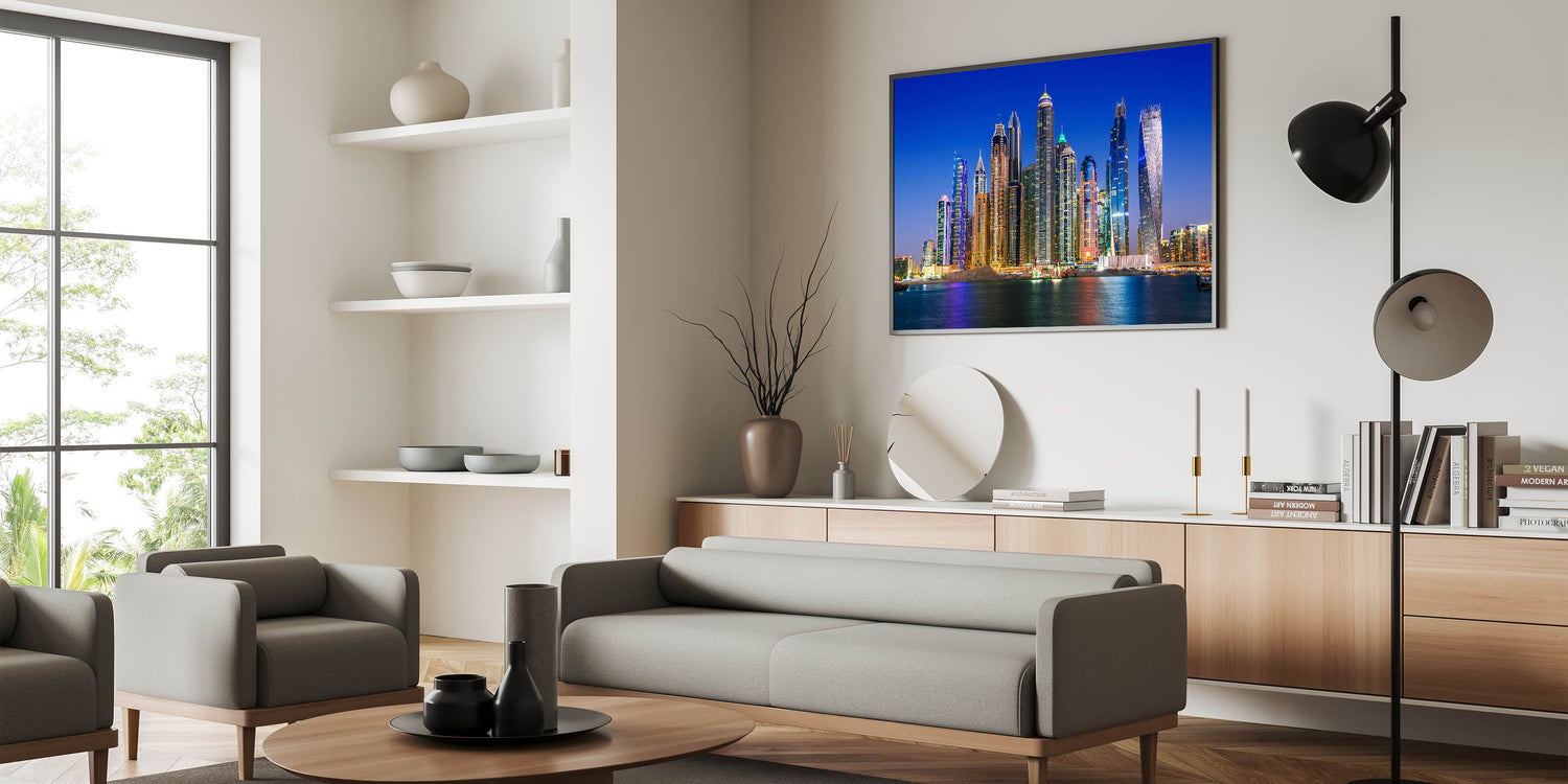 • Premium quality Dubai canvas prints available in stretched, framed, and acrylic glass options
