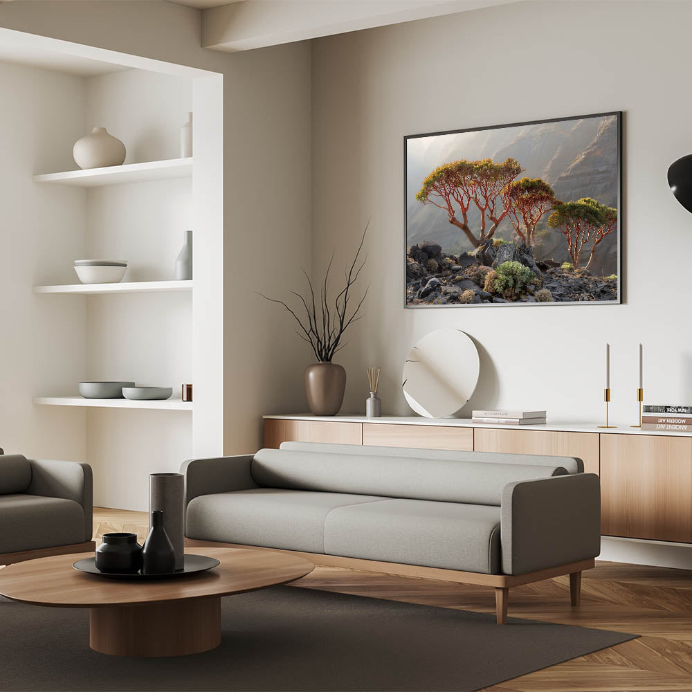 Bring the unique beauty of Socotra Island into your home with this Middle Eastern Art Print. This artwork features the captivating Dragon’s Blood Trees set against the stunning mountains of Yemen, offering a tranquil escape into nature. As part of our Yemen Landscape Prints collection, this piece captures the essence of Yemen’s serene and rugged scenery, making it a perfect addition to your decor.