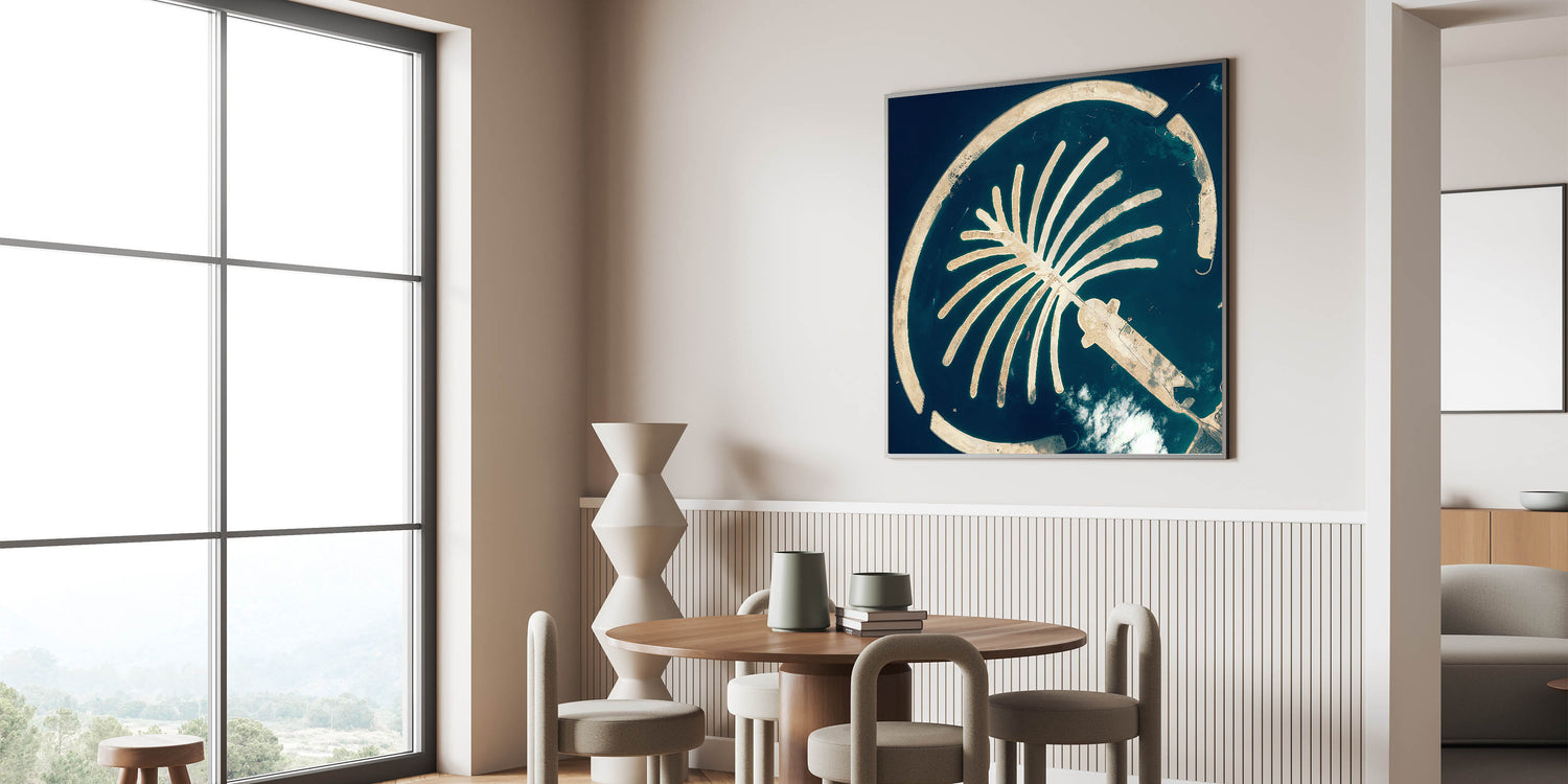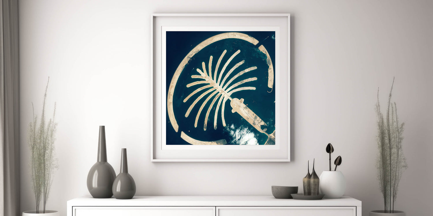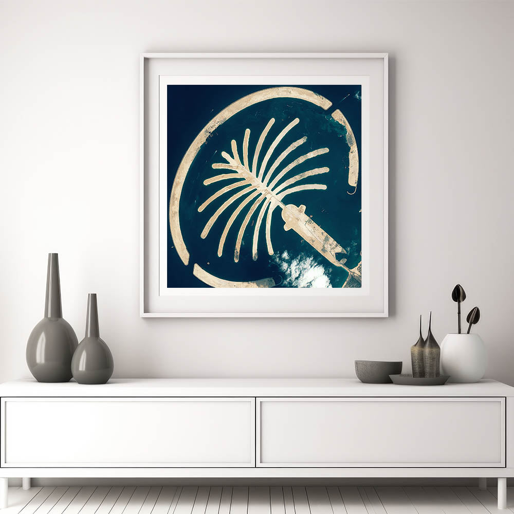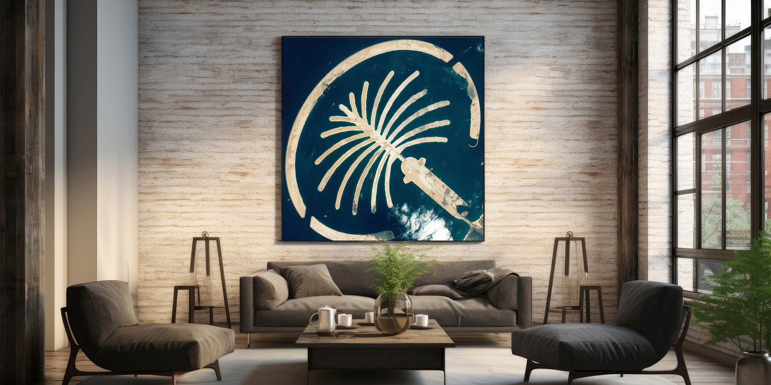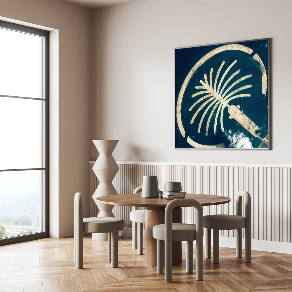 This Palm Jumeirah artwork captures the grandeur of Dubai’s most famous man-made island from an incredible aerial perspective. Add this stunning piece to your collection and enjoy the luxury and innovation of Dubai’s skyline in your home or workspace.