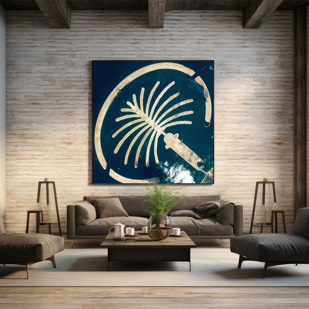 Capture the awe-inspiring beauty of Dubai’s iconic Palm Jumeirah with this breathtaking aerial view wall art. This high-quality Dubai canvas print offers a unique perspective of one of the world’s most ambitious and recognizable man-made islands, surrounded by the vibrant blue waters of the Arabian Gulf. Perfect for lovers of architectural marvels and contemporary landscapes, this piece adds a striking and luxurious touch to any room. Whether you're looking for aerial photography or modern Dubai wall decor, this artwork will make a statement in your home or office.