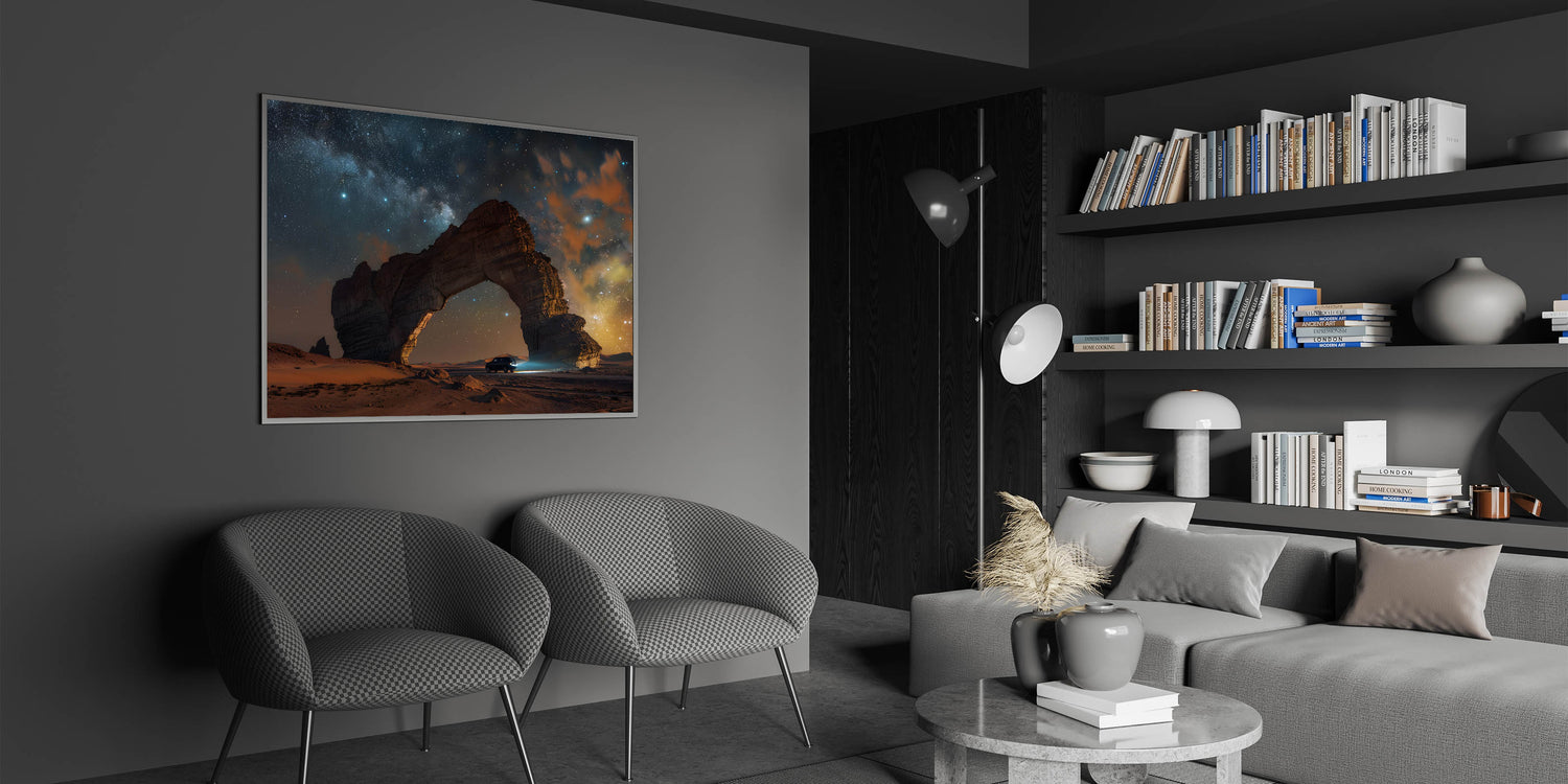 • High-quality Arabian prints capturing the ethereal beauty of the night desert landscape.