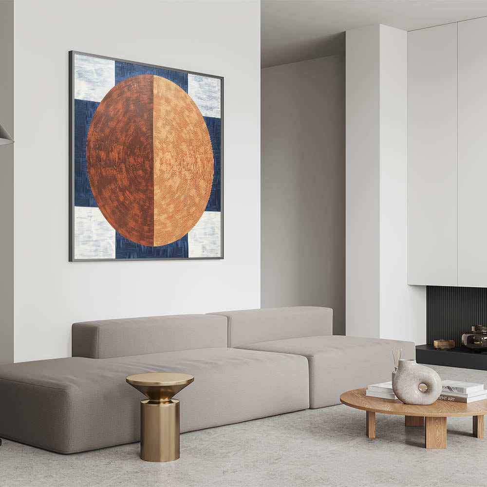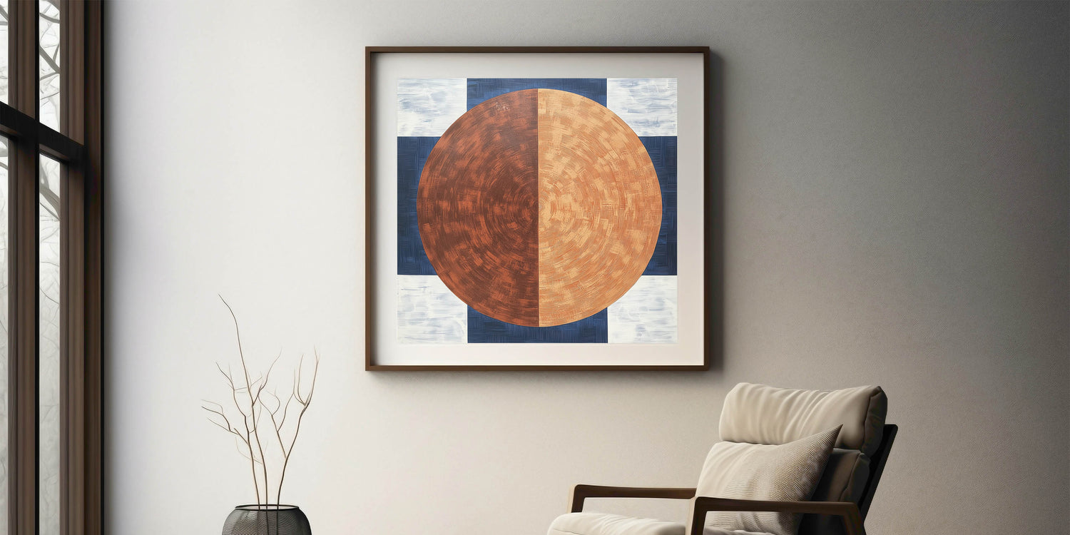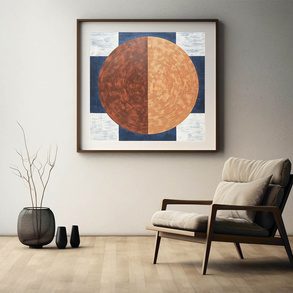 Abstract Geometric Wall Art - Bronze Circle with Navy and White Design