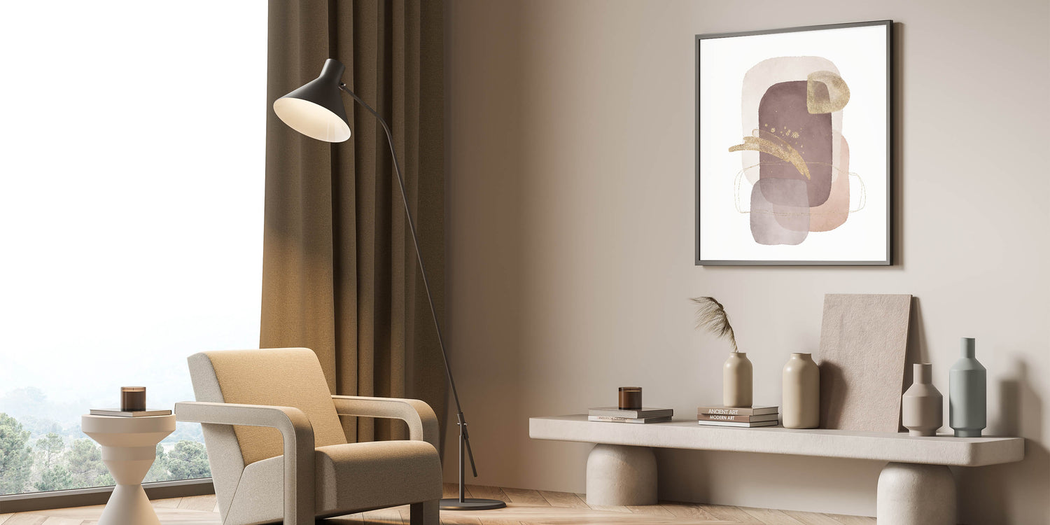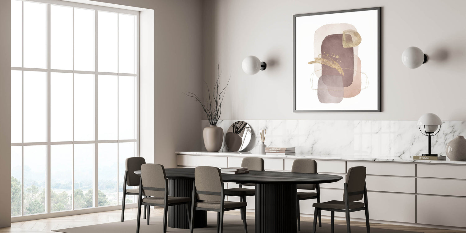 • Minimalist abstract canvas prints in various sizes for versatile styling