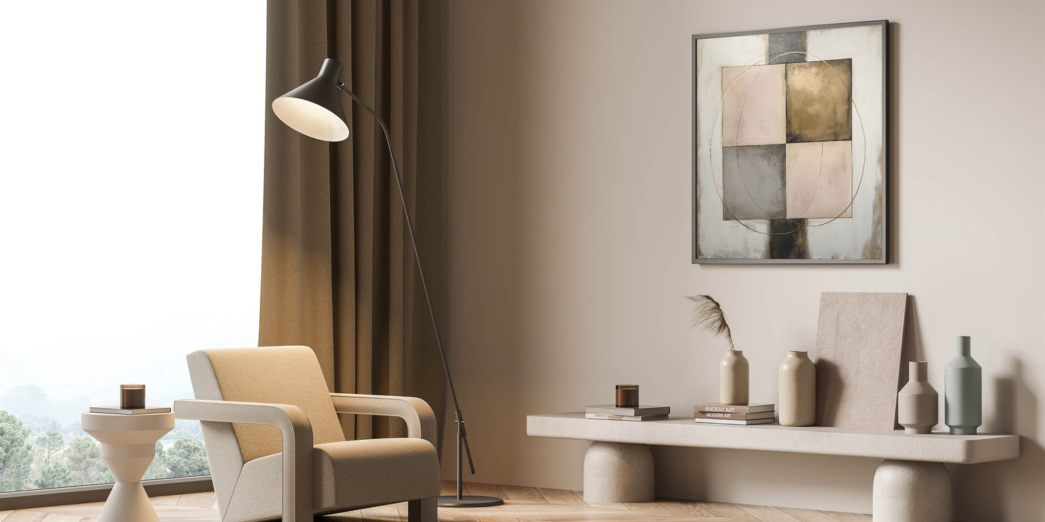 Abstract Geometric Wall Art - Neutral Tones with Gold and Circular Accents