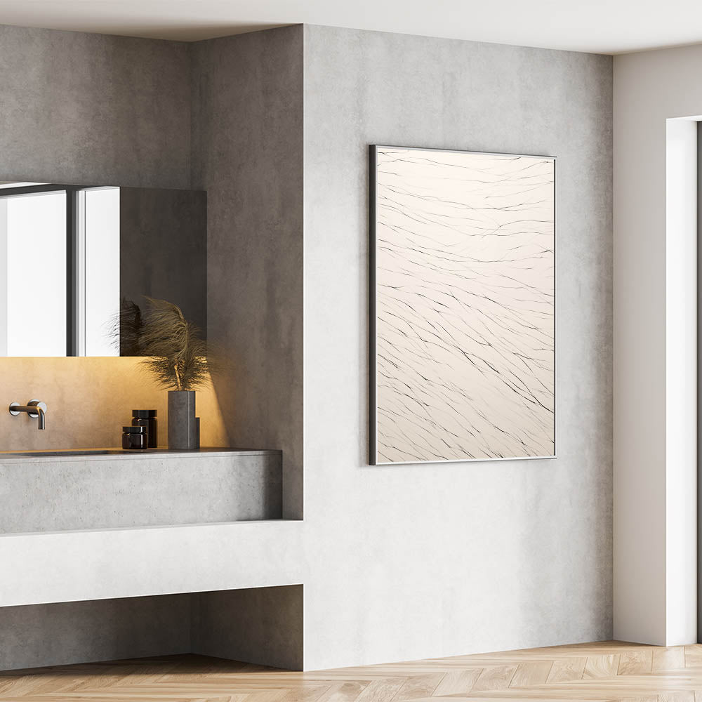 This abstract minimalist art piece adds a sense of depth and serenity to any space. Its clean design and neutral tones make it versatile for various interior styles, bringing a peaceful ambiance to your modern home.