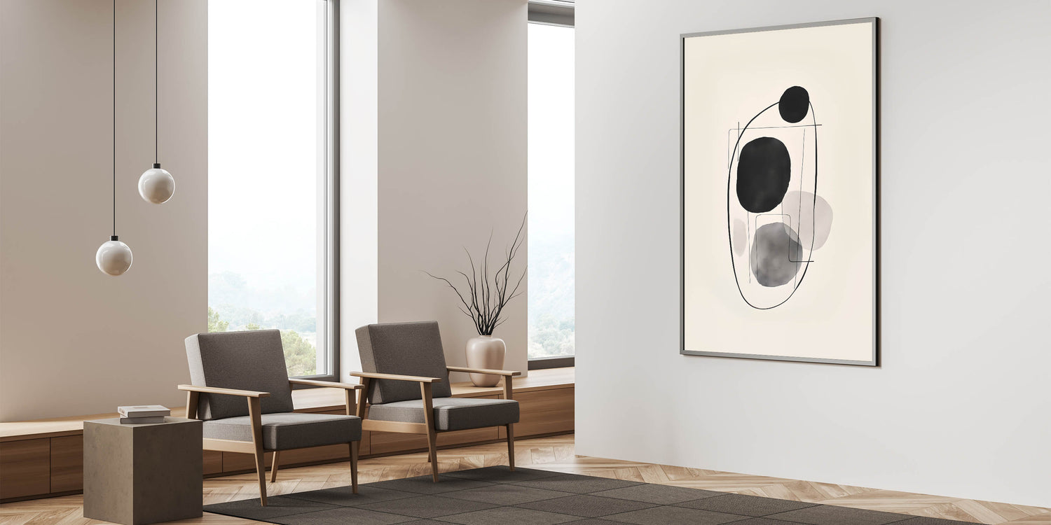 Ideal for living rooms, bedrooms, or offices, this abstract art piece brings a sense of harmony and simplicity to your space. Embrace the beauty of geometric forms and minimalist design with this refined artwork.