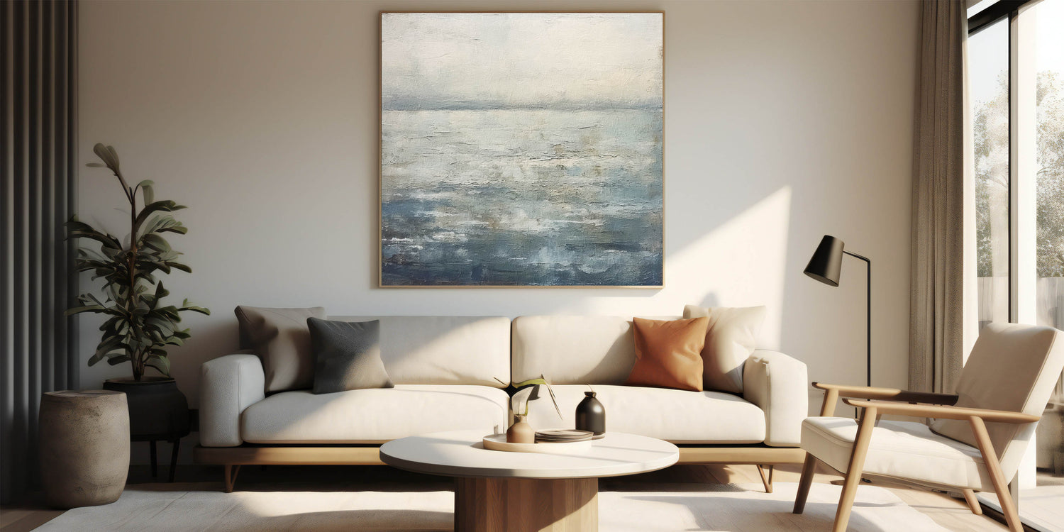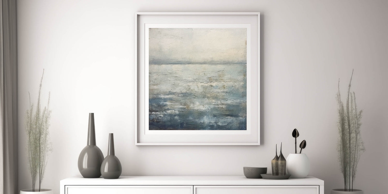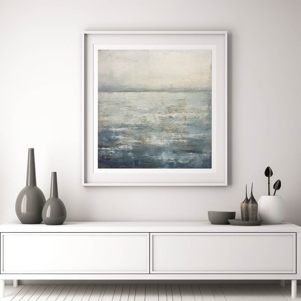 Introduce a peaceful element to your decor with this serene abstract waterscape, ideal for creating a calming focal point in your home or workspace.