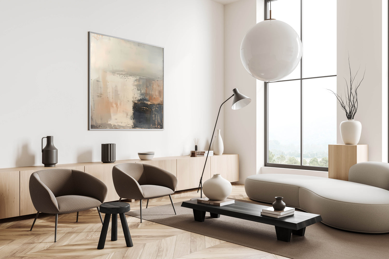 Calm Coastal Abstract Art - Beige and Gray Minimalist Wall Décor