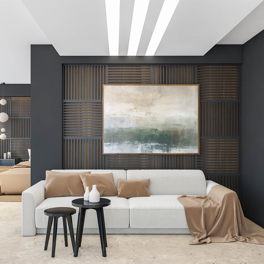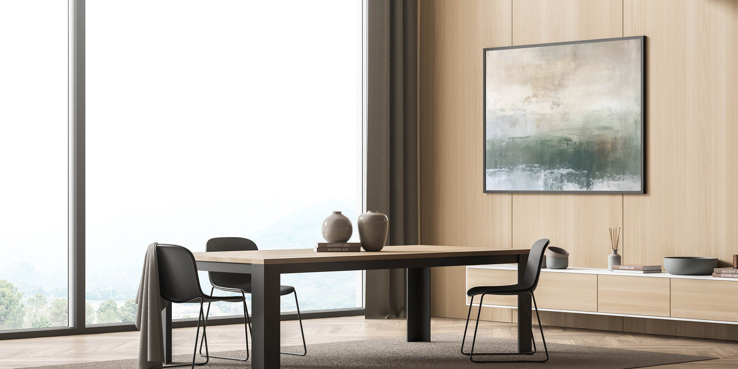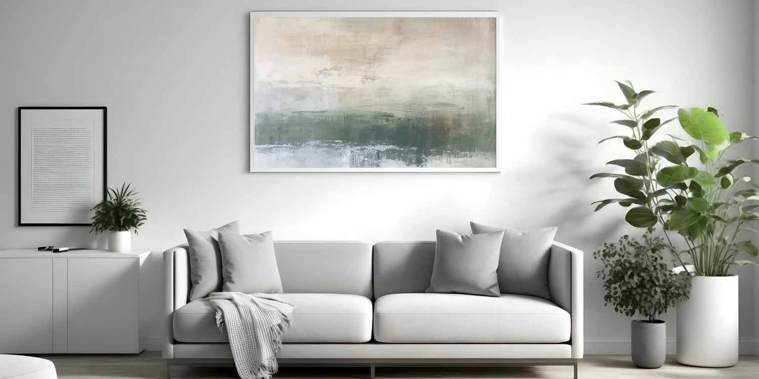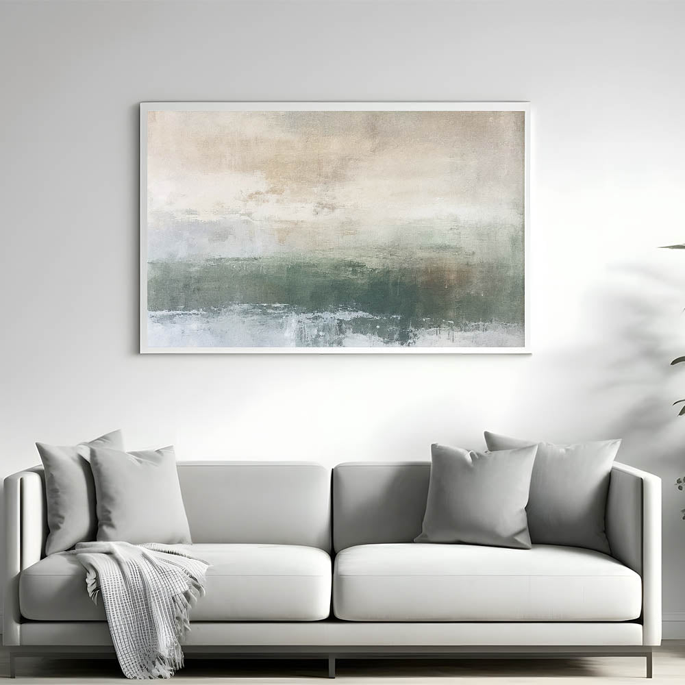 This calming abstract landscape captures the serene essence of a coastal horizon with soft, muted shades of green, beige, and gray. The minimalist design evokes a sense of tranquility and open space, perfect for adding a touch of peaceful sophistication to any room. Ideal for contemporary and nature-inspired decor, this artwork beautifully balances gentle colors and subtle textures, creating a quiet ambiance that complements modern interiors.