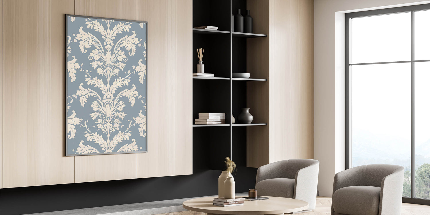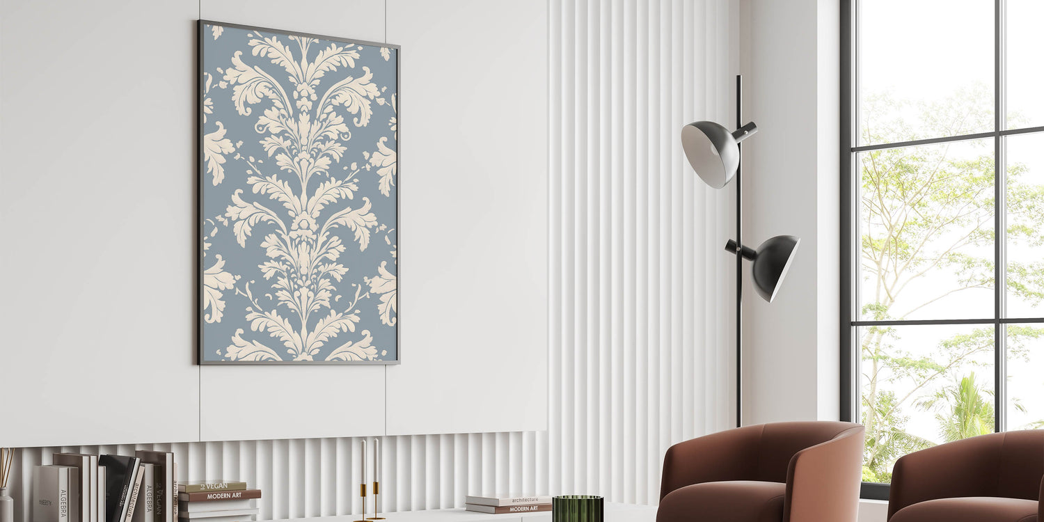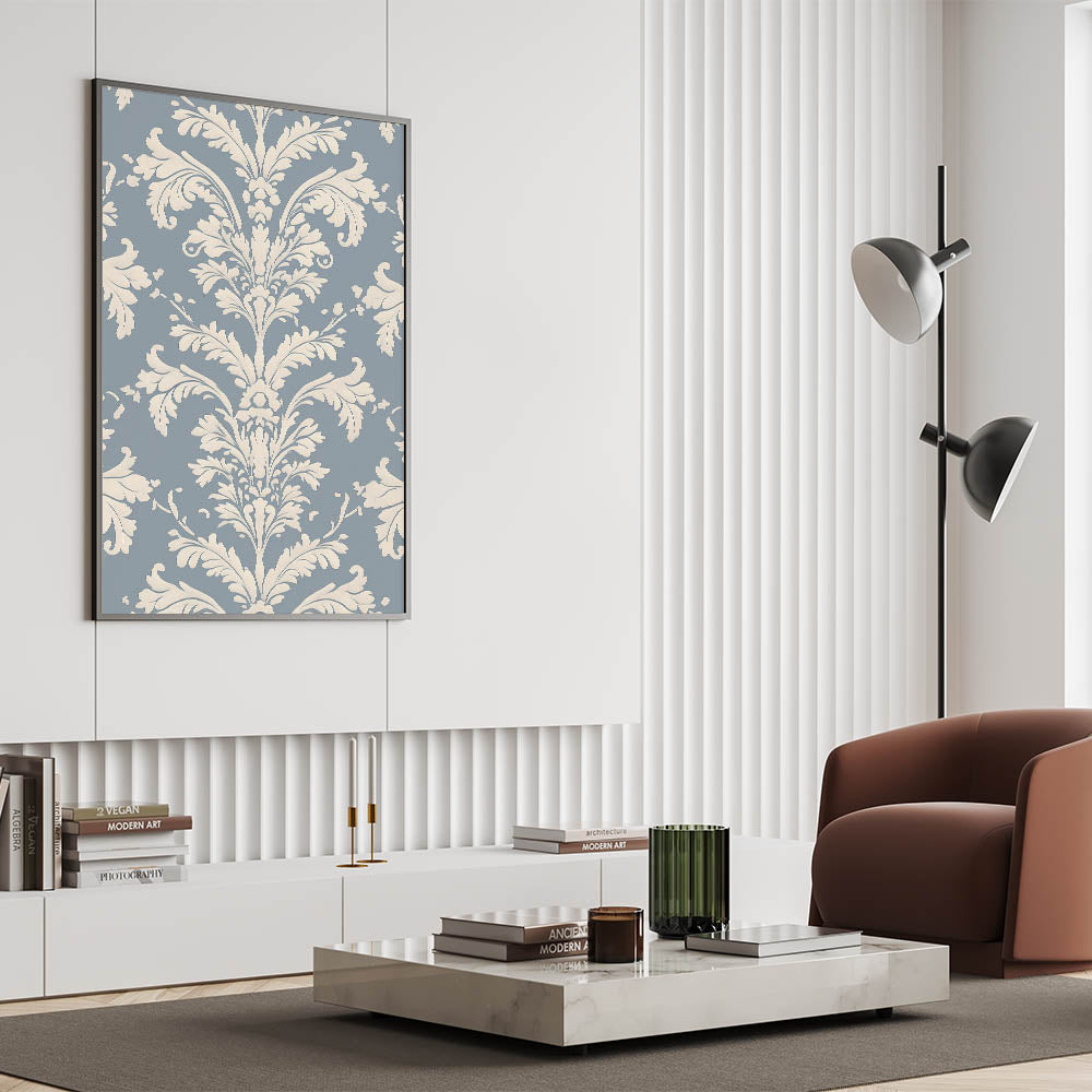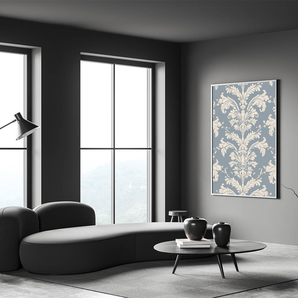 Add a touch of timeless sophistication to your space with "Classic Elegance," a minimalist abstract art piece featuring a refined floral motif. The intricate design, rendered in soft, muted tones of cream against a rich muted blue background, brings a sense of classic beauty and understated luxury to any room. Perfect for both traditional and modern interiors, this artwork serves as an elegant focal point that complements a wide range of decor styles.