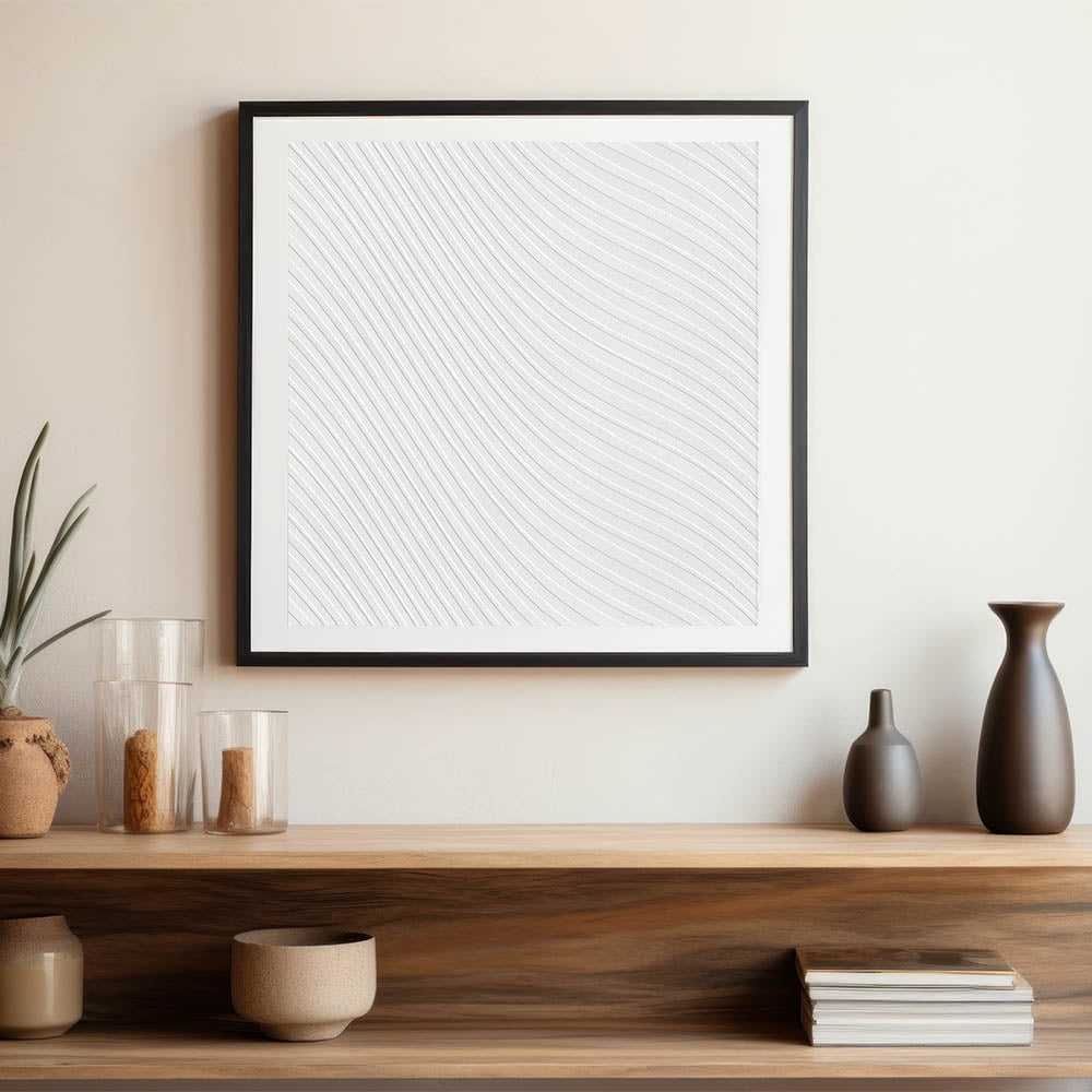 Contemporary Framed Abstract Art - Wavy Minimal Texture Design