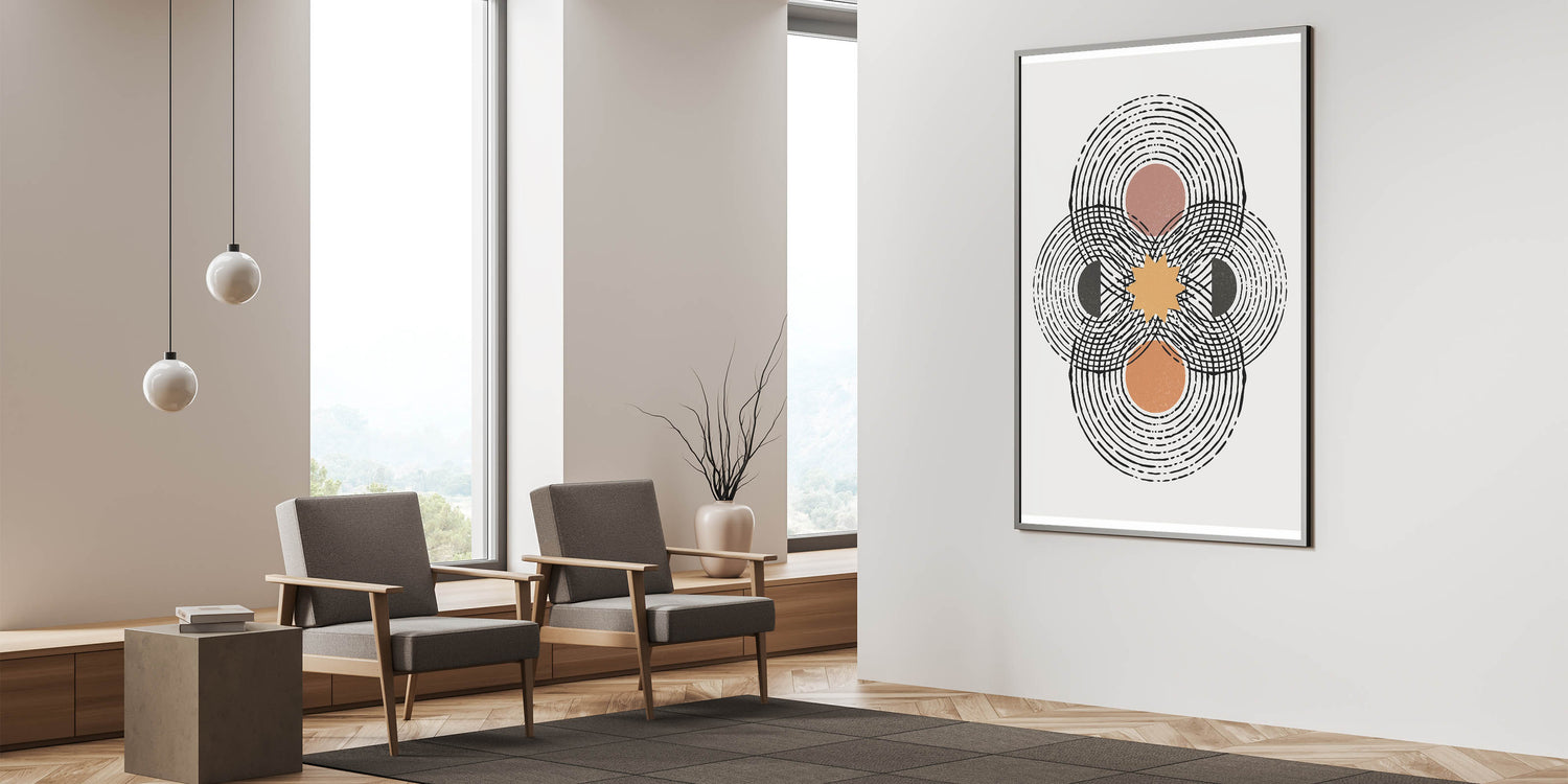 Contemporary Minimalist Art: Geometric Sunburst and Circles Design