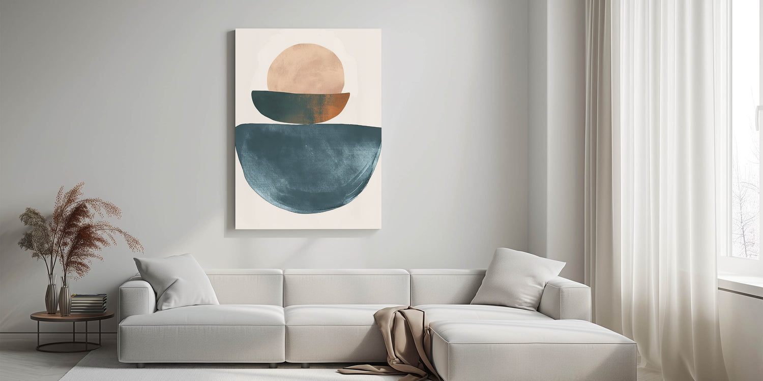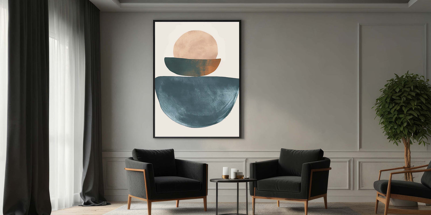 With its calming form and earthy-meets-modern palette, this artwork delivers timeless sophistication. It’s a subtle yet impactful choice of minimalist wall art to enhance modern living spaces.