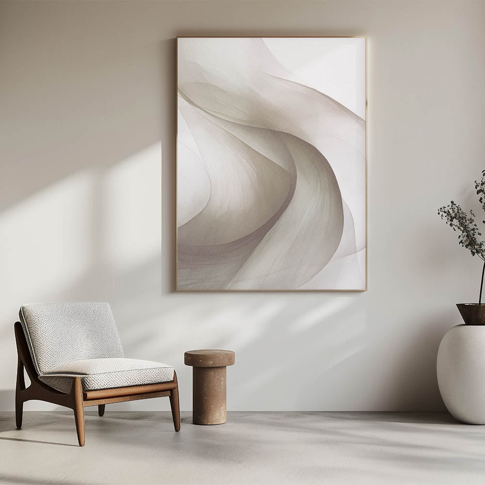 Introduce a sense of calm and sophistication to your space with this elegant modern abstract wall art. The design features flowing, overlapping shapes in soft neutral tones, creating a serene and harmonious atmosphere. This minimalist canvas is perfect for adding a subtle yet impactful touch to your home or office decor, effortlessly blending with various interior styles.