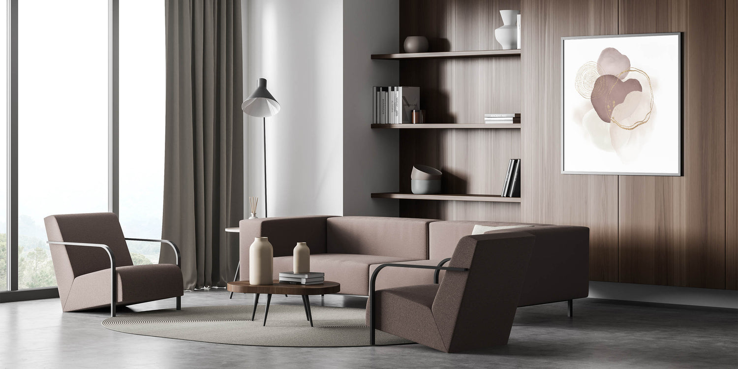 - Framed abstract geometric art option for a polished, gallery-like finish