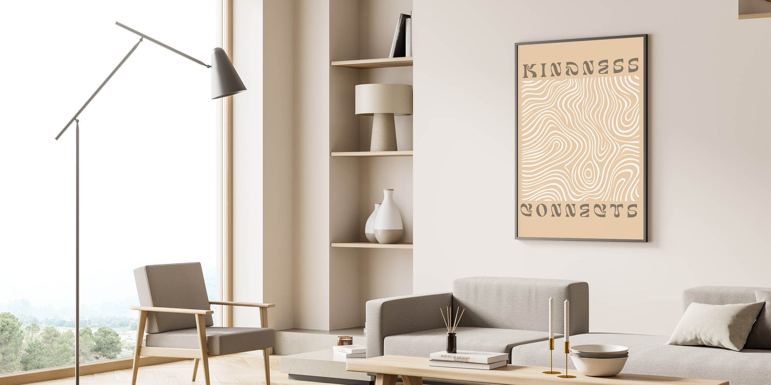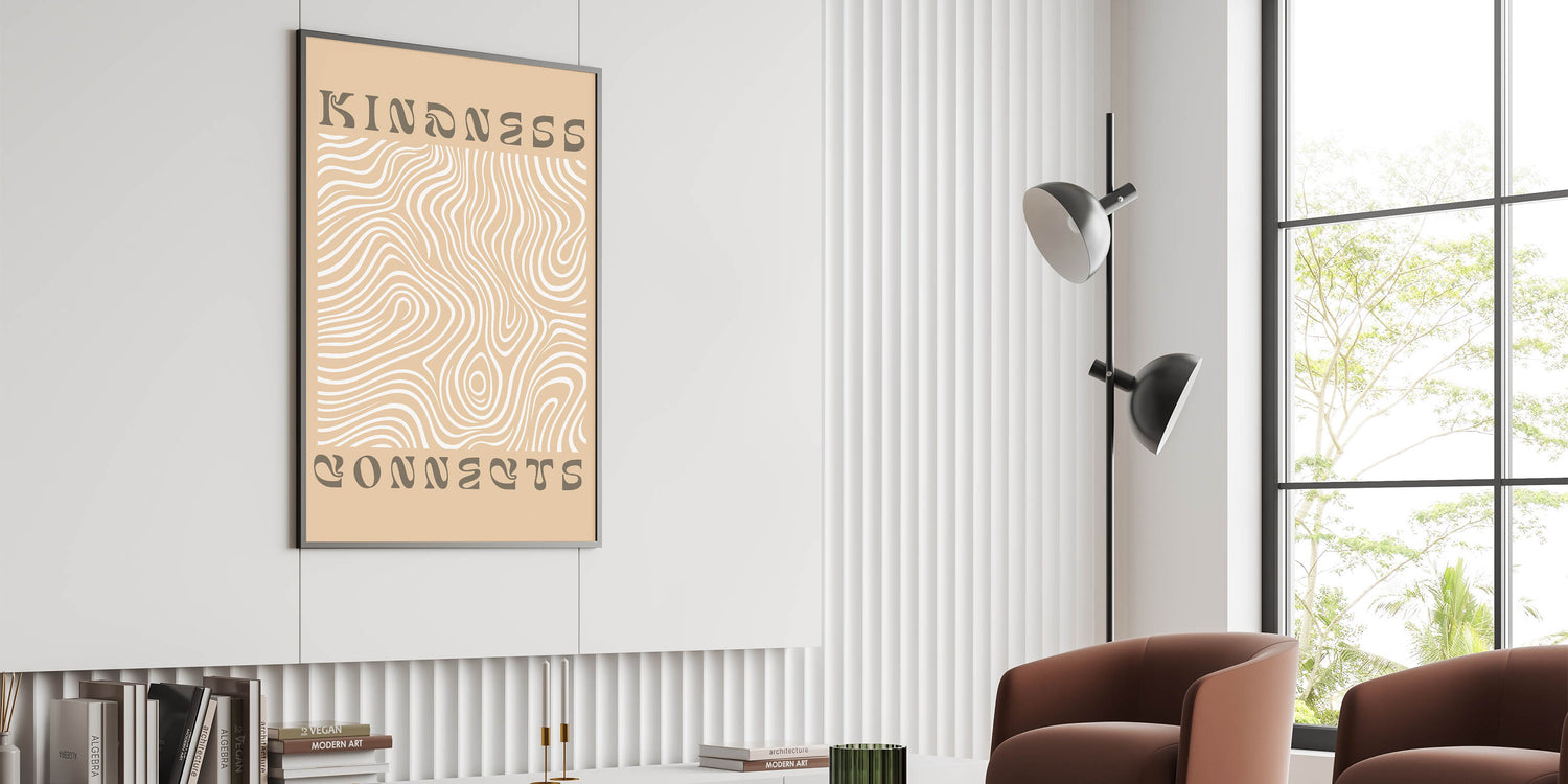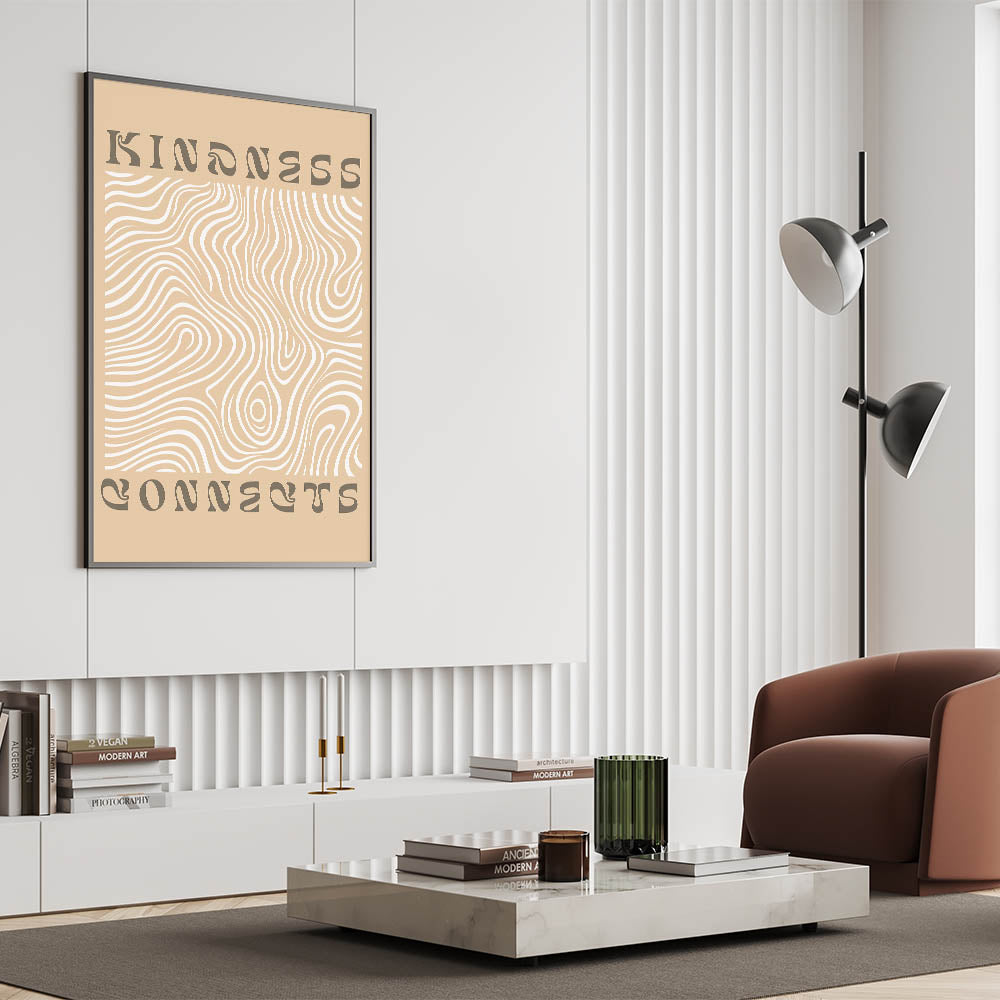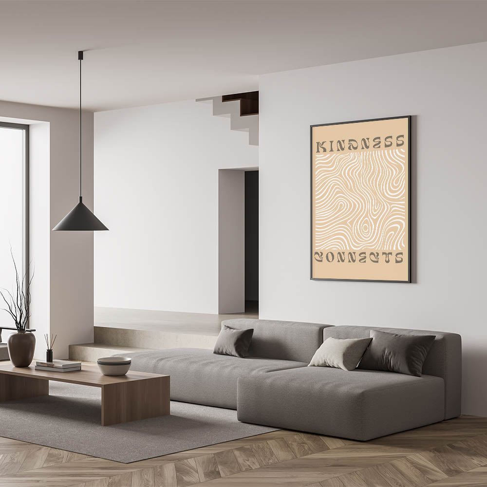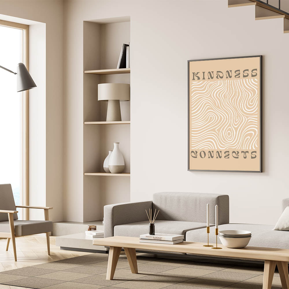 Bring a touch of positivity to your space with our "Kindness Connects" minimalist abstract art. Featuring an elegant organic wavy pattern and an inspirational quote, this piece is perfect for adding a sense of warmth and encouragement to any room. Ideal for those who appreciate the beauty of simplicity and the power of words, this artwork will enhance the aesthetic and atmosphere of your home or office.