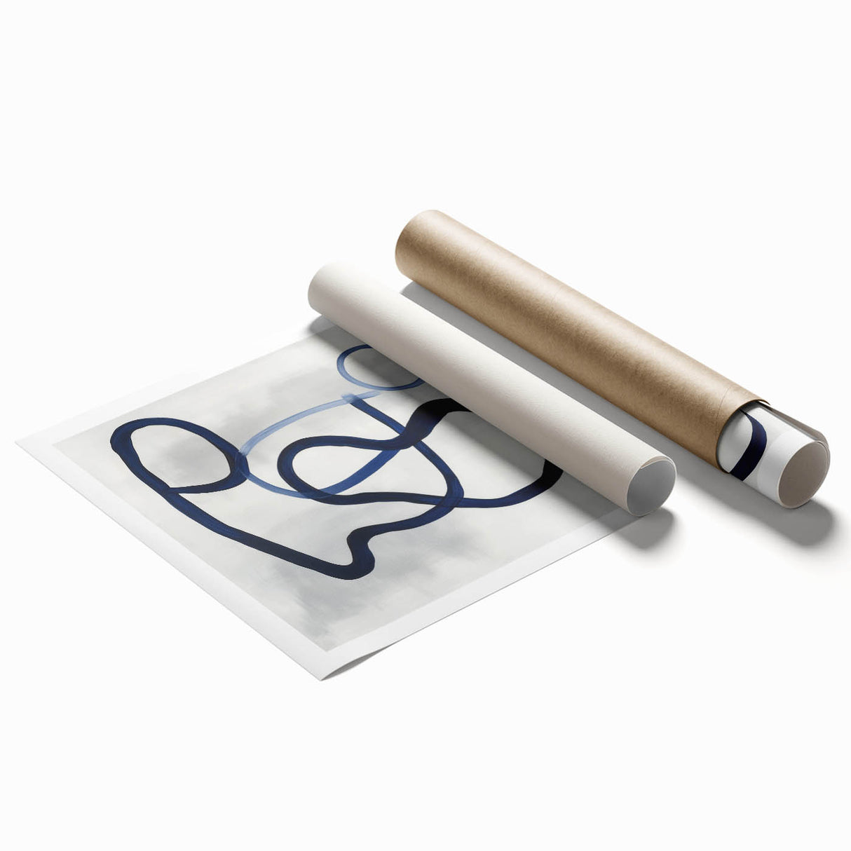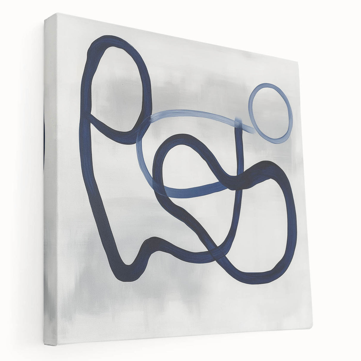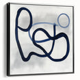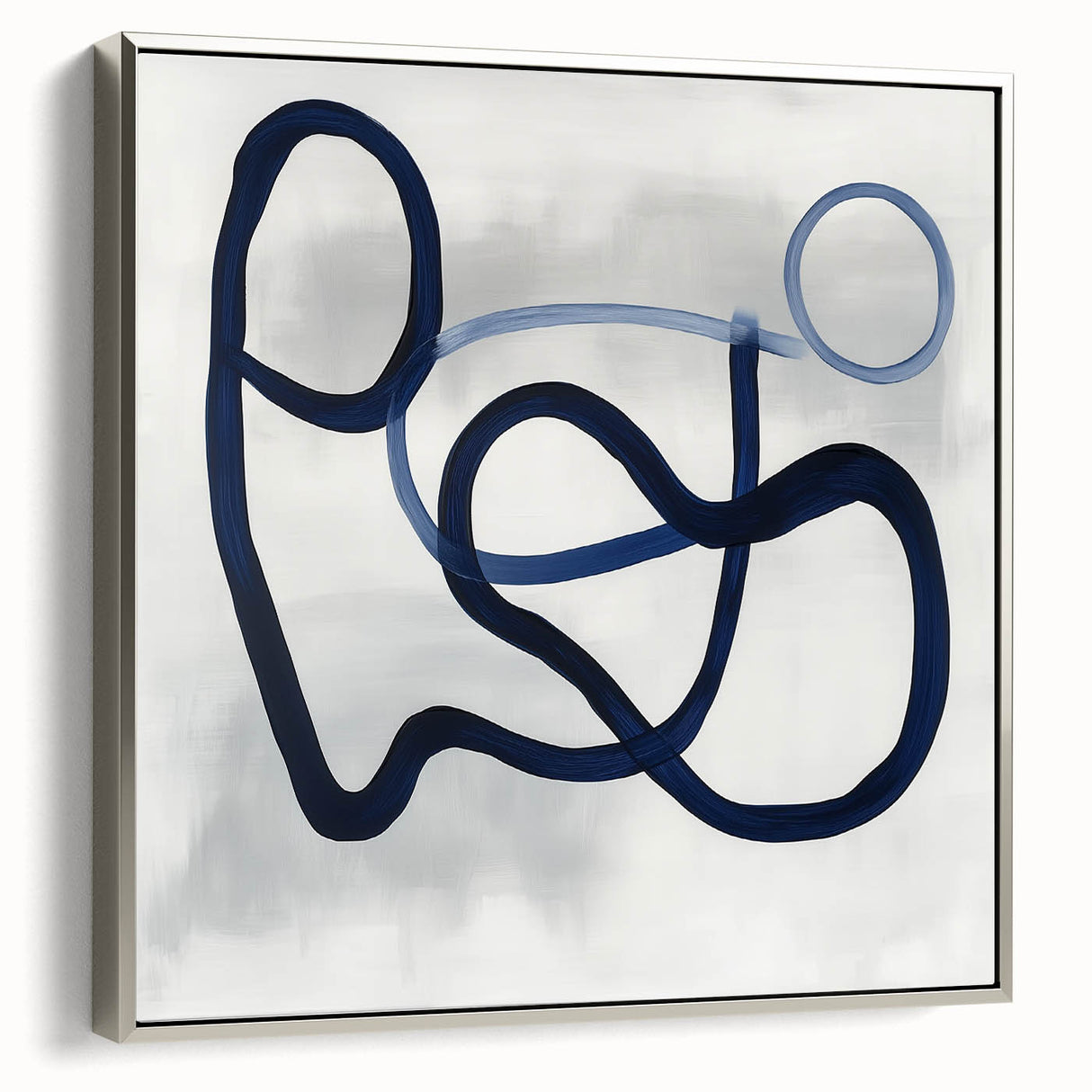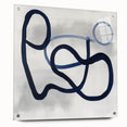 This modern abstract wall art captures elegance through motion and simplicity. Featuring deep navy blue and light blue strokes over soft gray, it creates balance and rhythm. Its geometric loops offer a dynamic structure within minimalist form. Designed for clean, modern interiors with artistic flair.