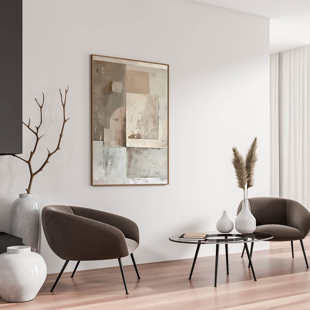 Textured Neutral Abstract Art - Minimalist Geometric Wall Decor