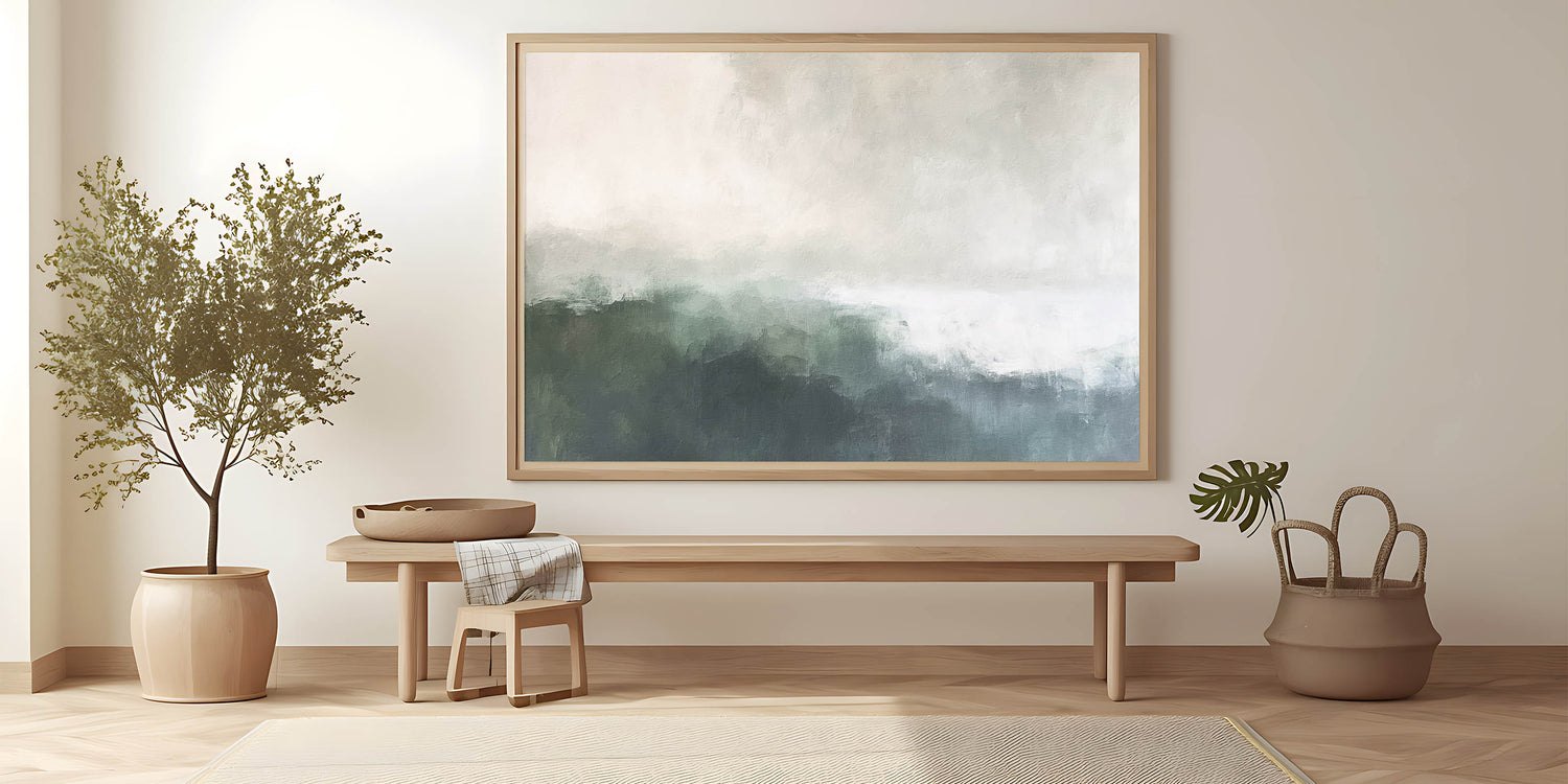 Transform your decor with this beautiful abstract landscape, a timeless piece that brings a sense of calm and sophistication to any room. Perfect for creating a peaceful retreat in your home.