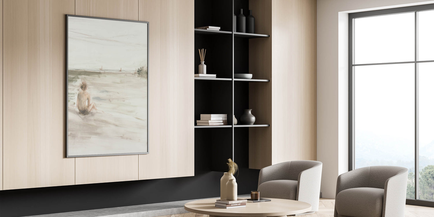 - Timeless Design: Highlights modern abstract figuratives with a serene, coastal theme.