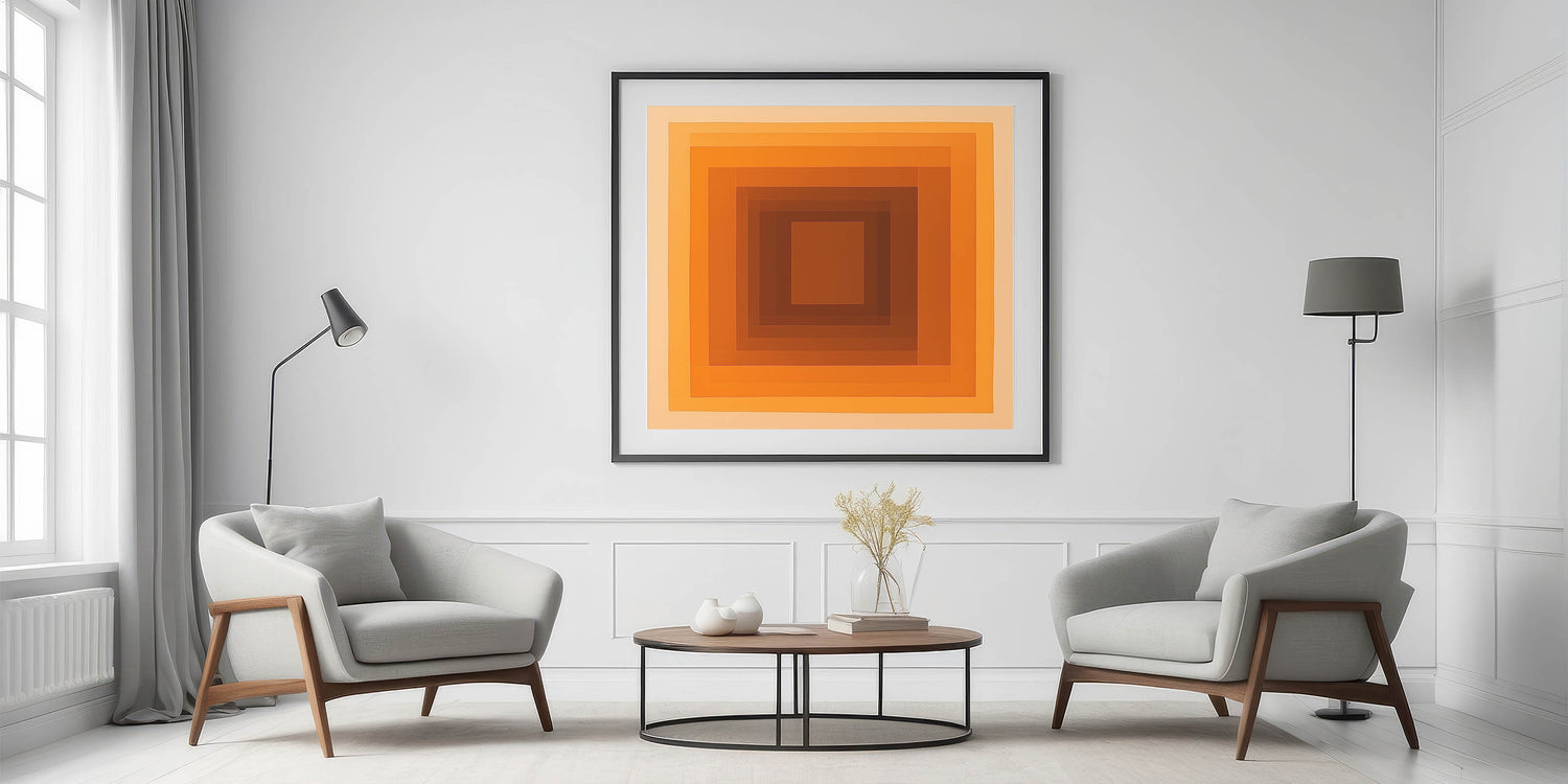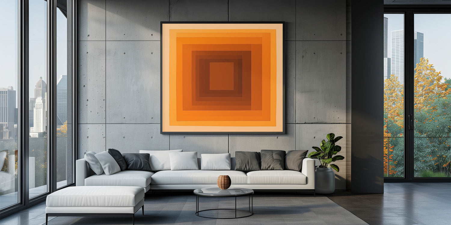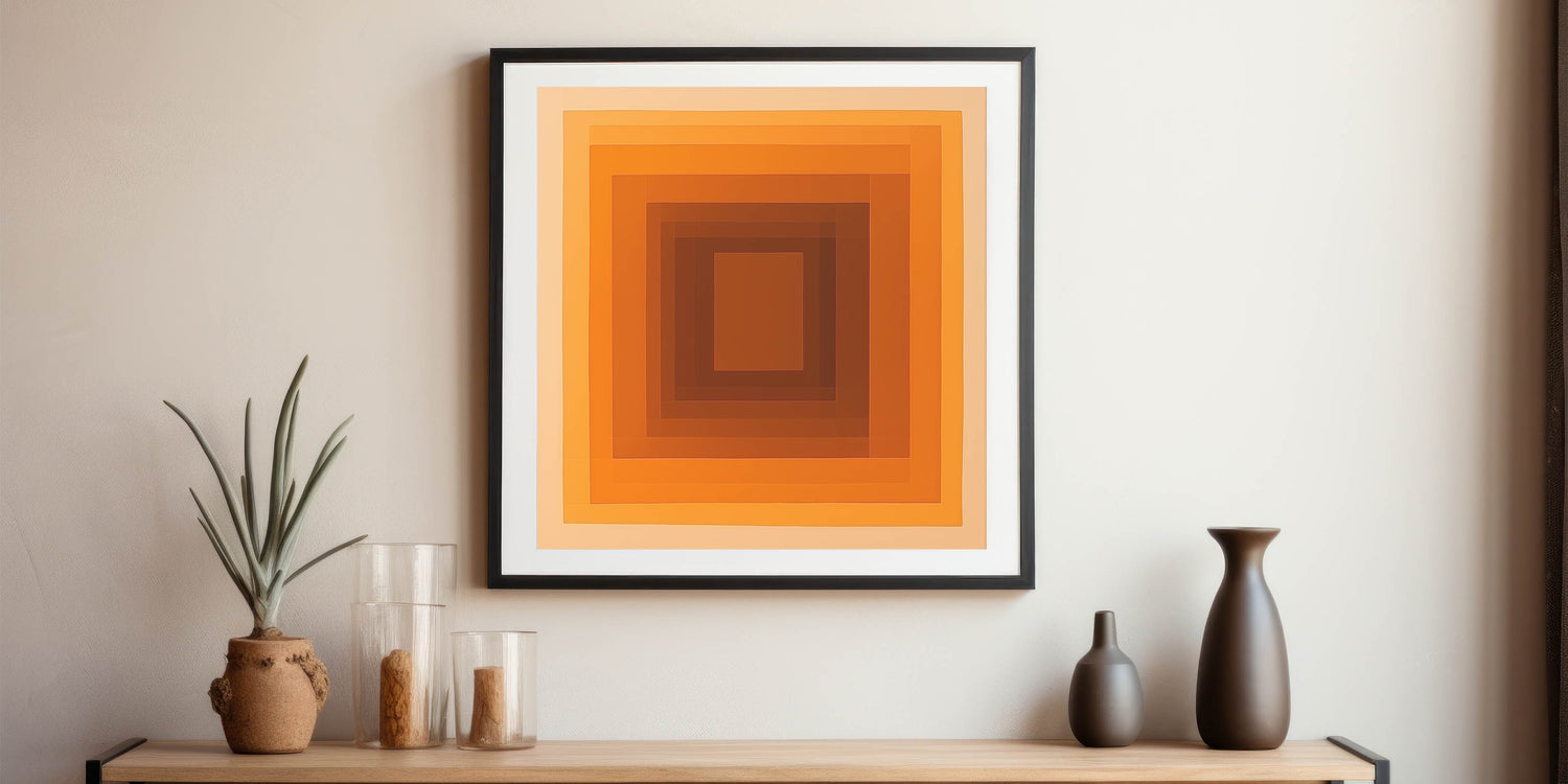 Energize your space with this geometric abstract wall decor featuring vivid concentric squares in layered orange and brown hues. This minimalist abstract wall art commands attention through precision and repetition, adding a modern, bold warmth to any room.