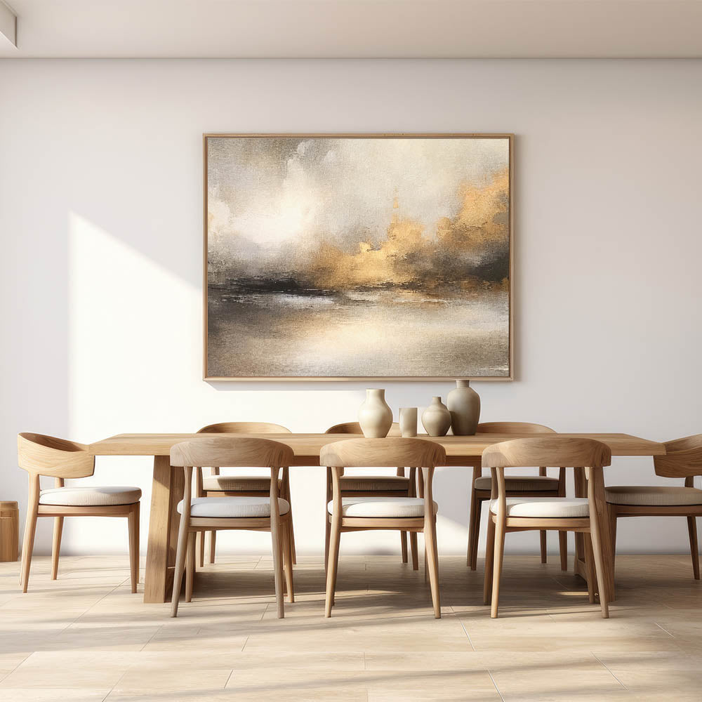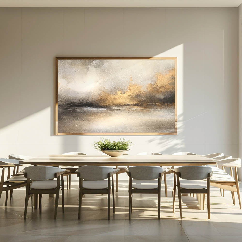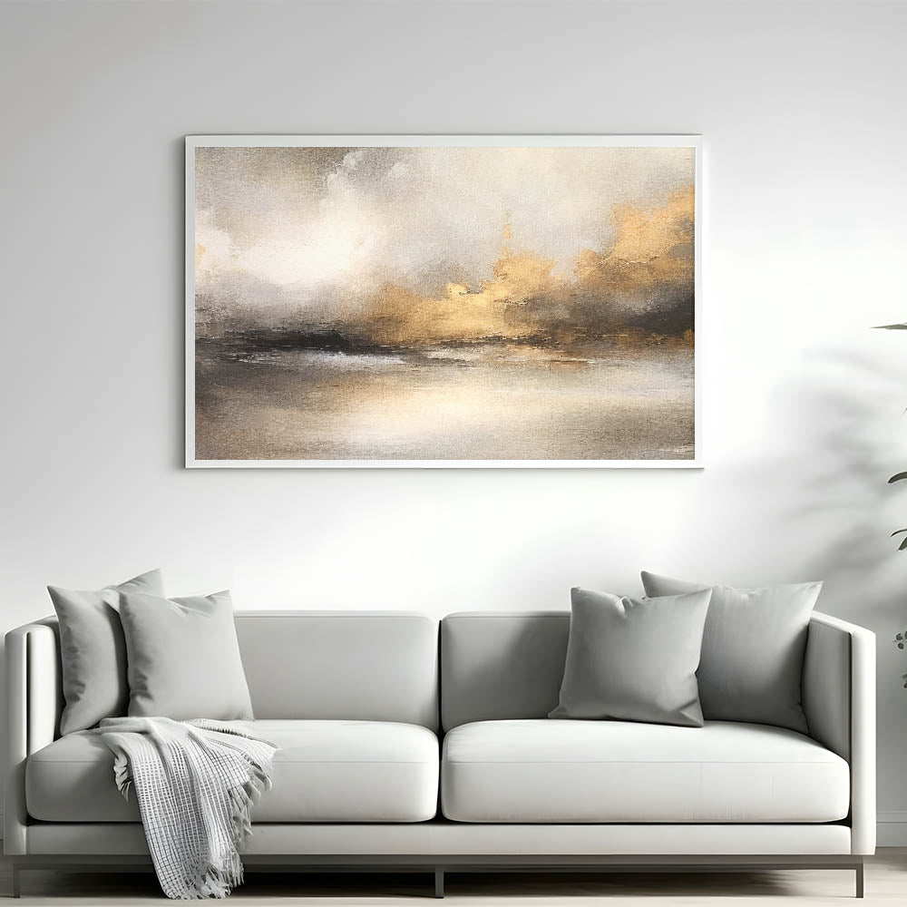 Add a warm, sophisticated touch to your decor with this golden glow abstract landscape art. Featuring deep golds, soft grays, and creamy whites, this piece captures the serene beauty of dawn or dusk, casting a tranquil ambiance over your space. Perfect for modern, minimalist, or rustic decor styles, this artwork serves as a captivating focal point, evoking peace and elegance.