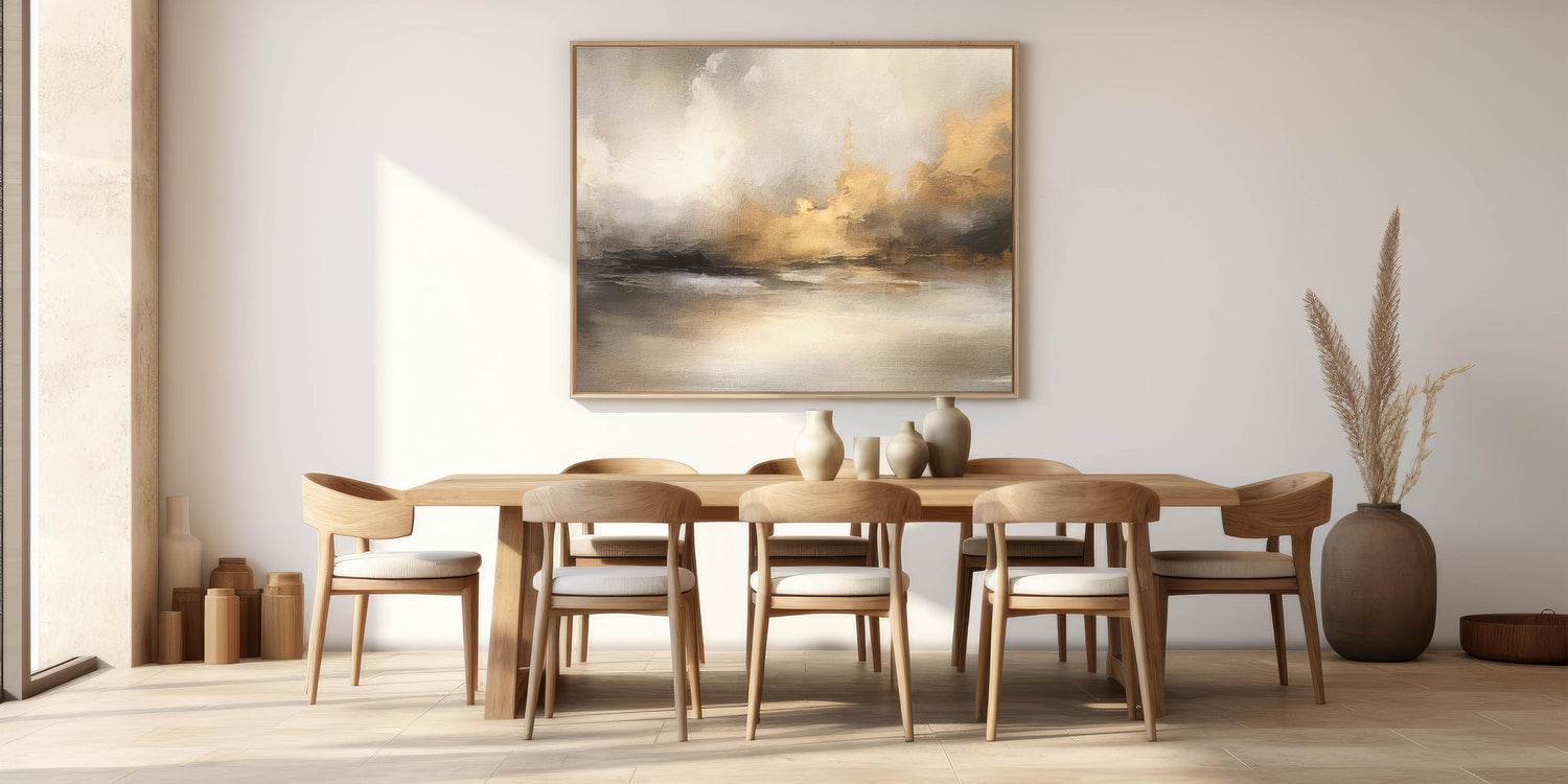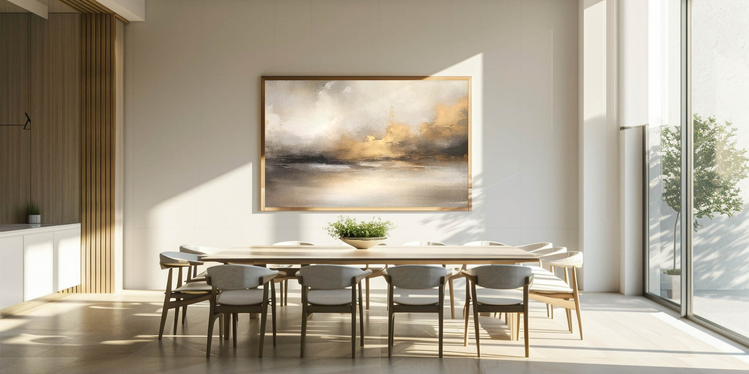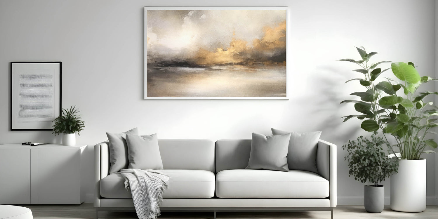 Add a warm, sophisticated touch to your decor with this golden glow abstract landscape art. Featuring deep golds, soft grays, and creamy whites, this piece captures the serene beauty of dawn or dusk, casting a tranquil ambiance over your space. Perfect for modern, minimalist, or rustic decor styles, this artwork serves as a captivating focal point, evoking peace and elegance.