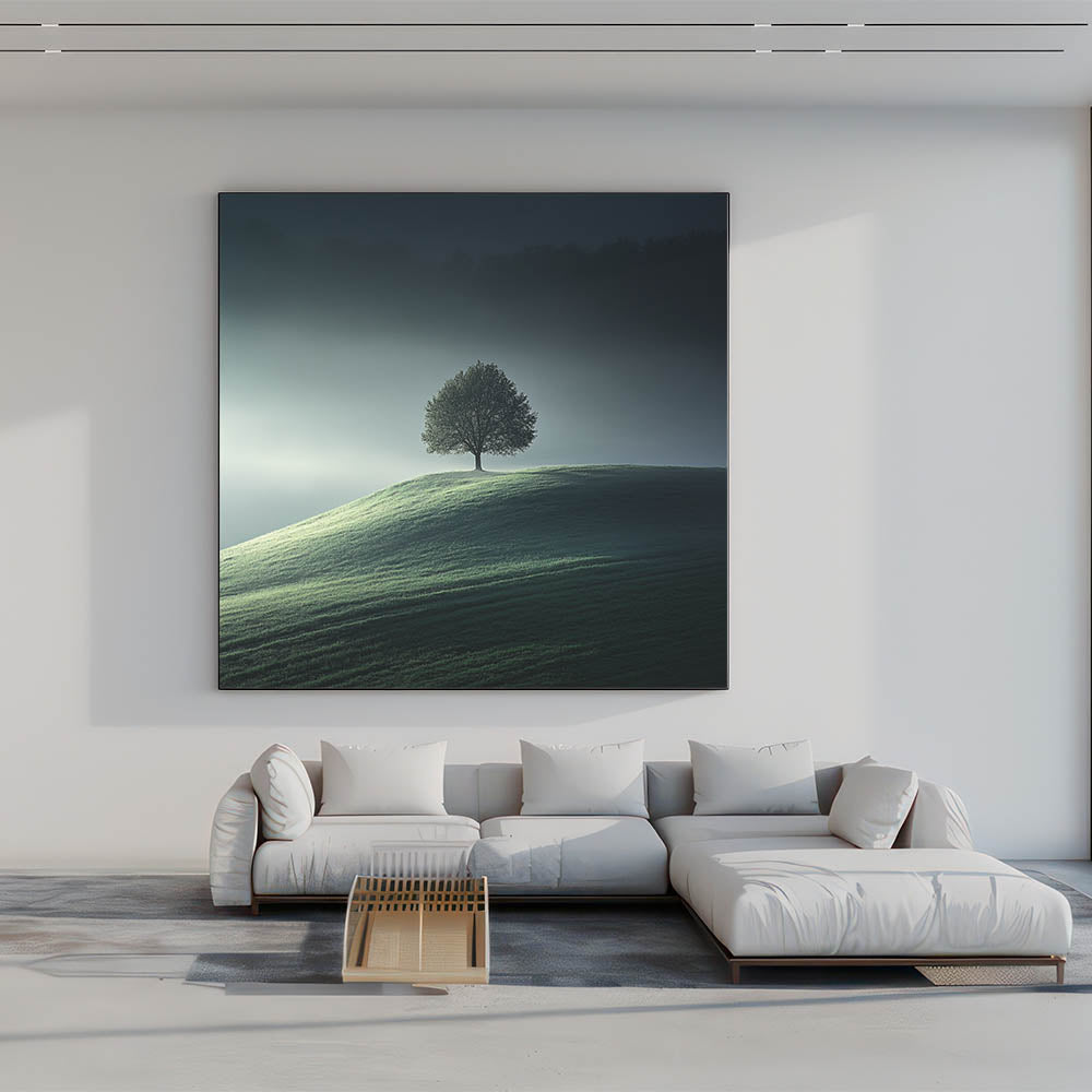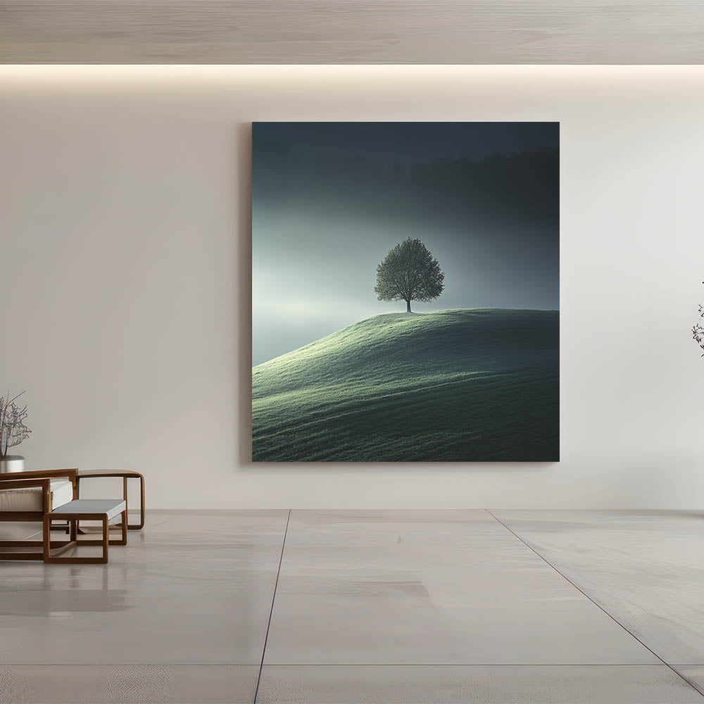 Immerse yourself in the serene beauty of nature with this breathtaking fine art photography framed print. Featuring a lone tree on a softly lit, mist-covered hillside, this stunning landscape captures the perfect balance of tranquility and mystery.