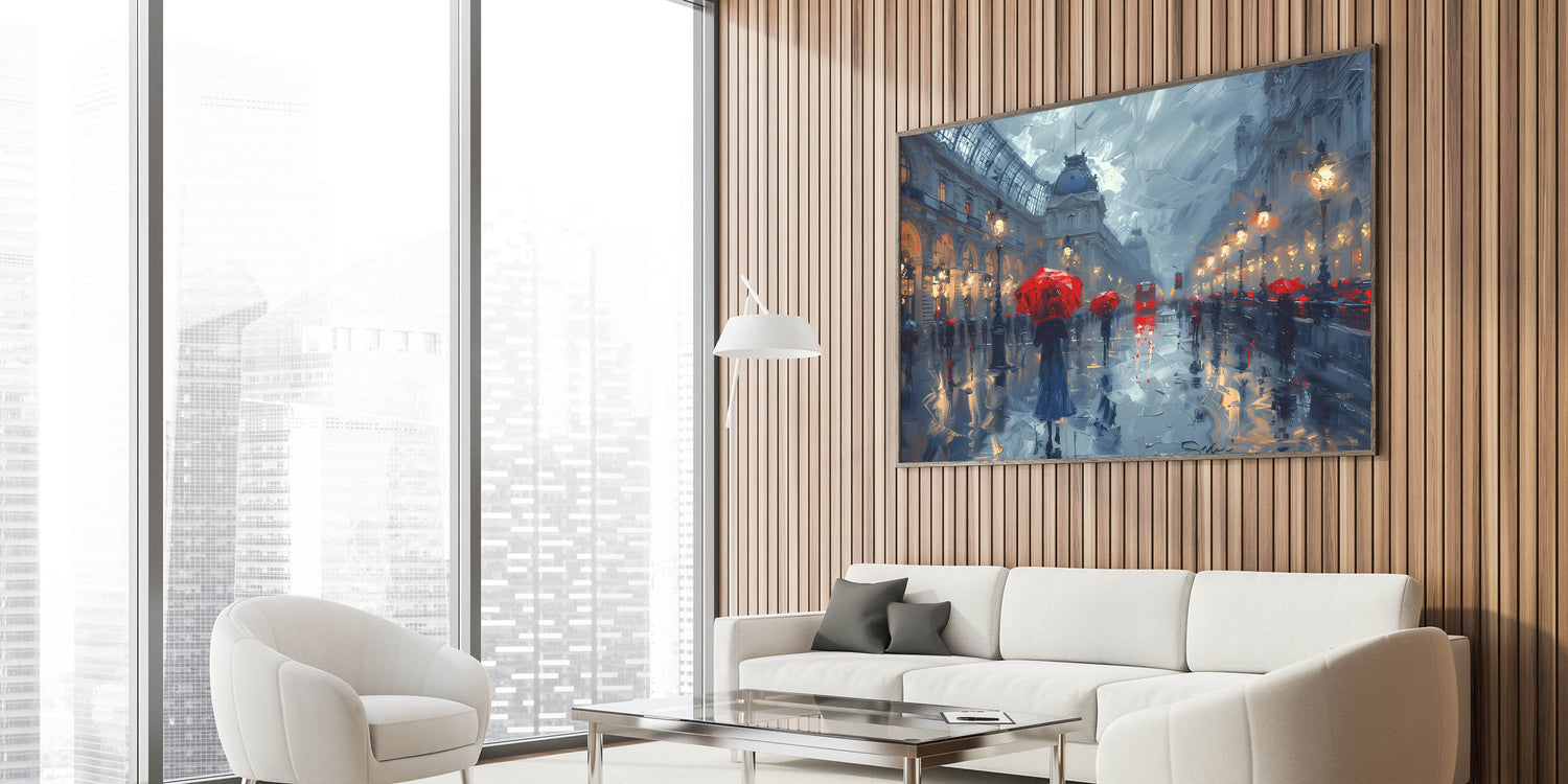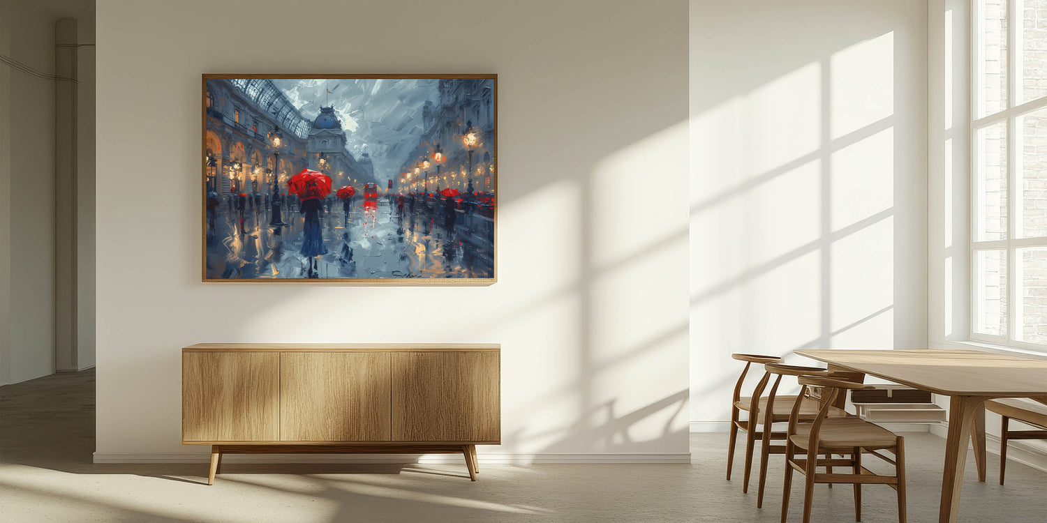 - Urban Charm: Evokes the allure and mystery of a bustling city in the rain, perfect for modern and contemporary decor.