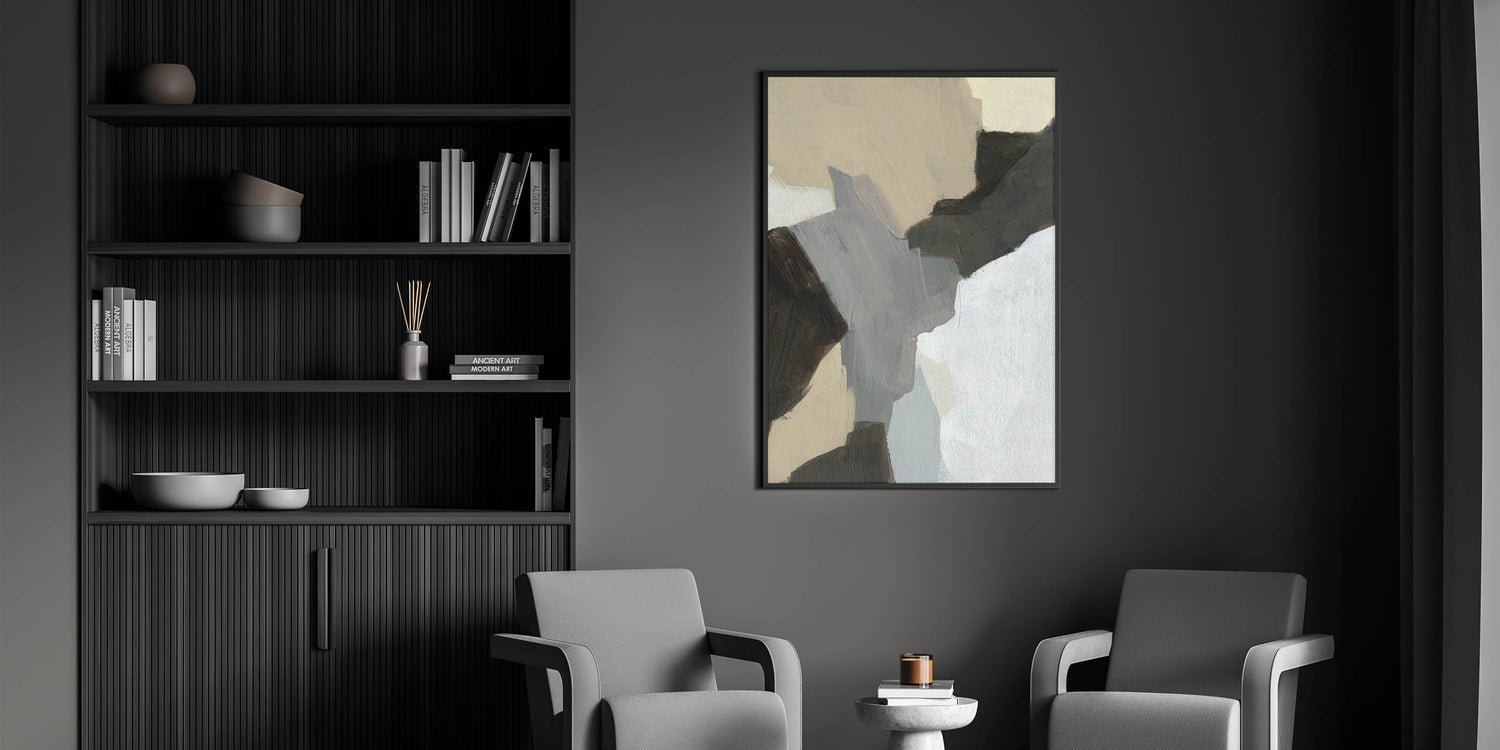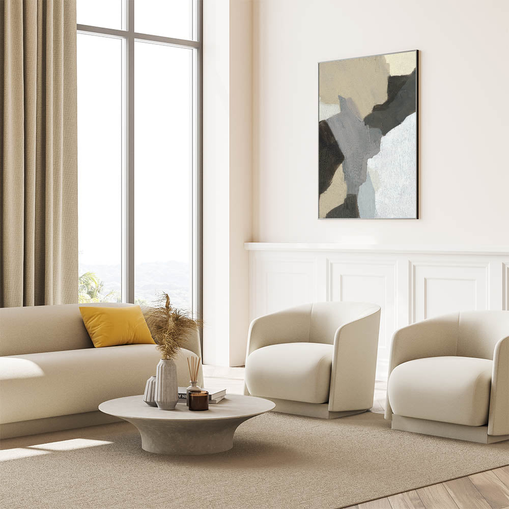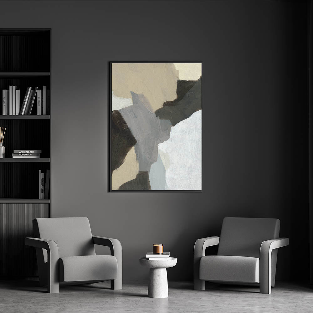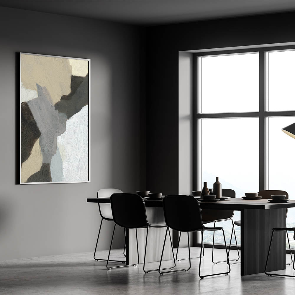 This modern abstract wall art embraces a neutral color palette with soft earth tones and geometric layering, creating a sophisticated yet organic aesthetic. Featuring fluid shapes in beige, gray, black, and off-white, this piece exudes warmth and balance, making it an ideal choice for contemporary interiors. As part of the modern abstract art collection, this design blends seamlessly into minimalist, industrial, and Scandinavian decor styles.