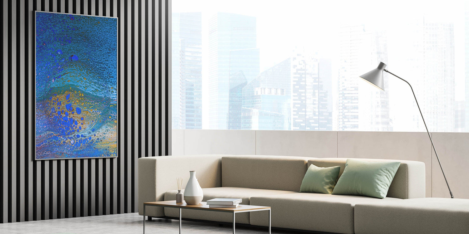 Perfect for coastal homes, modern interiors, or creative workspaces, this fluid acrylic wall decor brings a sense of tranquility and movement to any space. Whether you're drawn to its oceanic hues or flowing textures, this contemporary fluid art piece is a timeless addition to your decor.