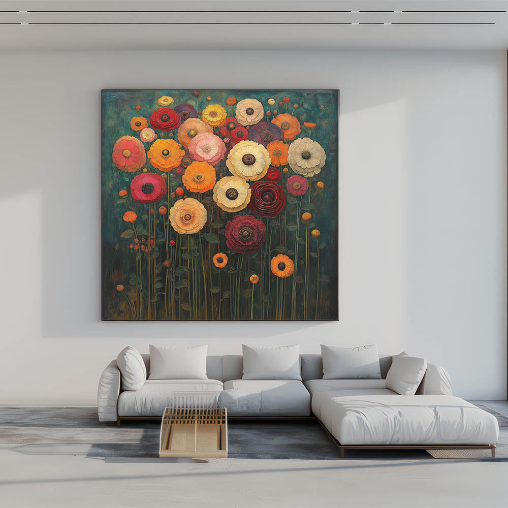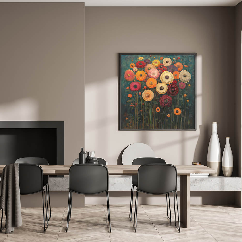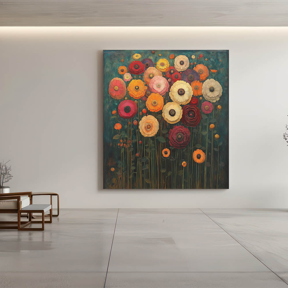 Transform your space with this colorful abstract floral design, showcasing a mesmerizing bouquet of bold red, orange, and golden blooms. This modern flower abstract painting is an exquisite display of nature’s beauty, combining vivid colors with a dramatic, deep green backdrop. Perfect for art lovers, this contemporary botanical canvas print adds warmth, energy, and sophistication to any home or office.