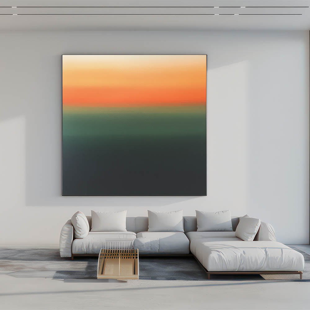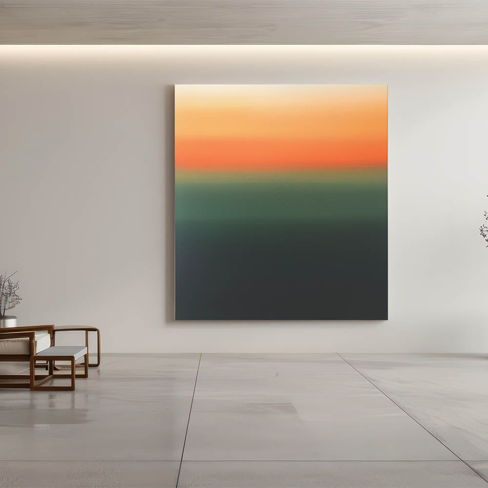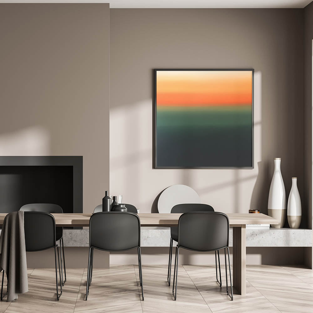Bring warmth and depth to your space with this abstract geometric wall art, featuring a mesmerizing blend of sunset-inspired hues transitioning into rich green and deep black tones. This modern geometric art print embodies contemporary abstract patterns, making it a stunning addition to modern interiors.