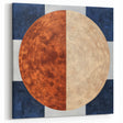 Transform your space with this Contemporary Abstract Canvas from the Abstract Geometric collection. This artwork features a bold circular design split into textured bronze and soft beige, set against a navy and white geometric background. Its striking composition adds depth and elegance, making it ideal for modern interiors.