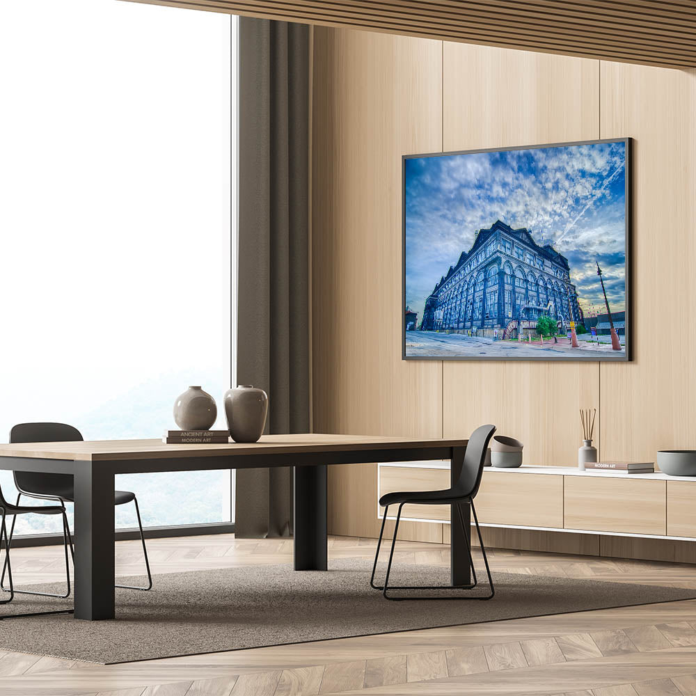 - High-Quality Print: Rich colors and sharp reflections make this cityscape a stunning focal point