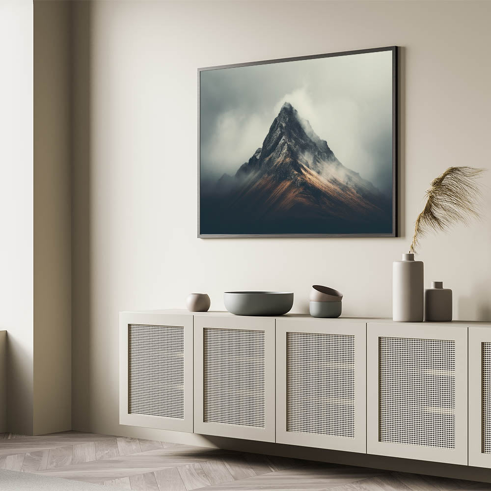 Whether you’re inspired by the grandeur of mountains or drawn to the mysterious allure of misty peaks, this canvas print will make a bold addition to your art collection.