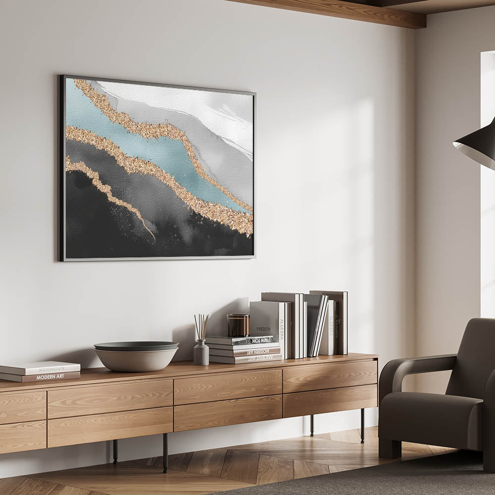 - Modern Design: A bold blend of black, gray, teal, and gold, perfect for contemporary interiors.
