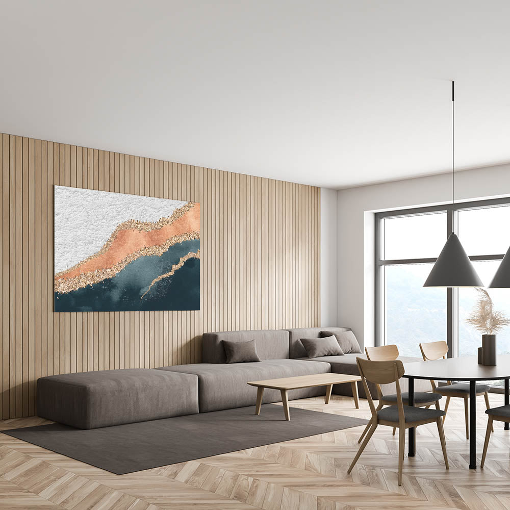 - Luxurious Design: A blend of gold, white, teal, and orange tones, ideal for modern and contemporary spaces.