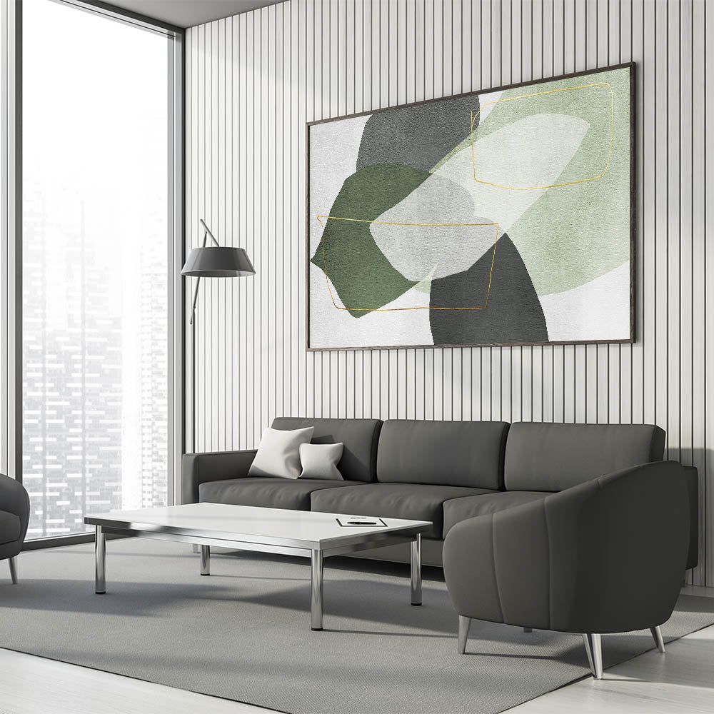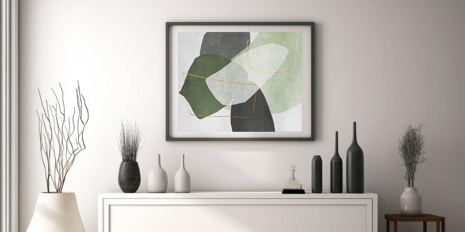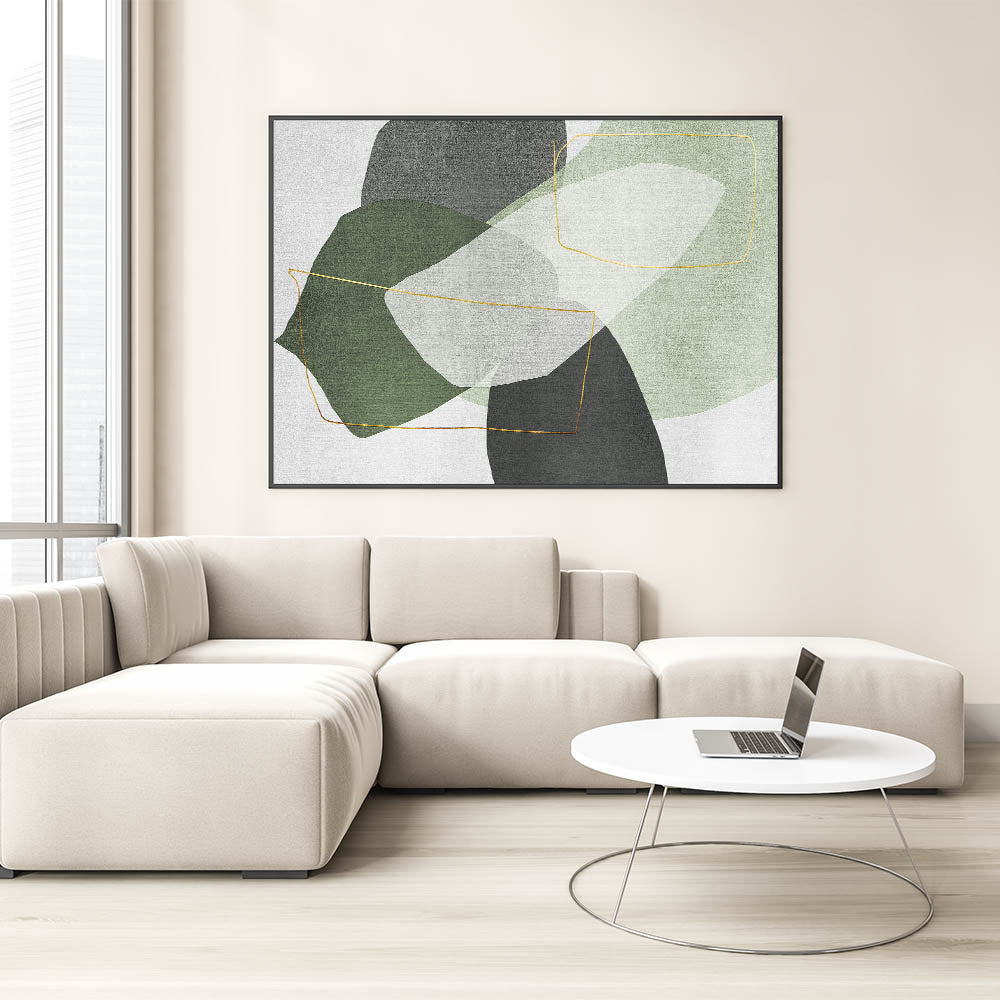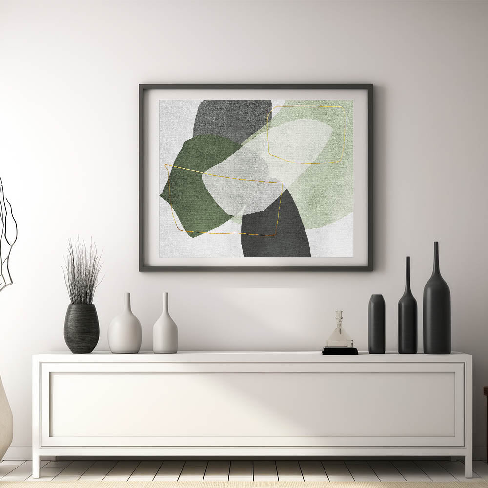 Infuse your space with balance and calm through this Earthen Harmony Abstracts design. This nature-inspired abstract wall art features overlapping forms in olive, sage, and dark green, accented with golden outlines. The fluid shapes and soothing hues make it a standout piece of modern abstract art for tranquil, thoughtfully styled interiors.