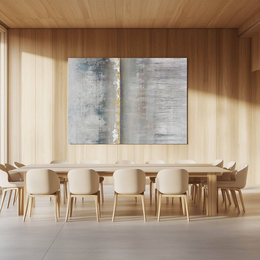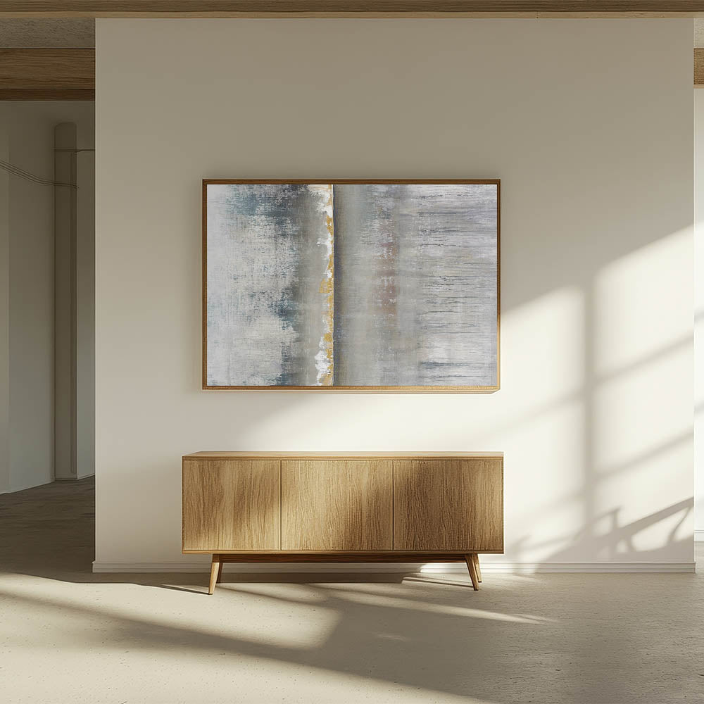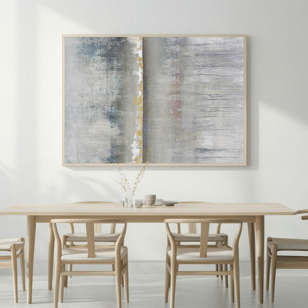 This modern abstract canvas art brings a sophisticated touch with its metallic gray tones and subtle gold accents. The textured design creates a sense of depth, blending cool and warm hues to evoke the raw beauty of layered stone or weathered metal. Ideal for contemporary and minimalist decor, this piece adds elegance and intrigue, making it a refined statement for any space.
