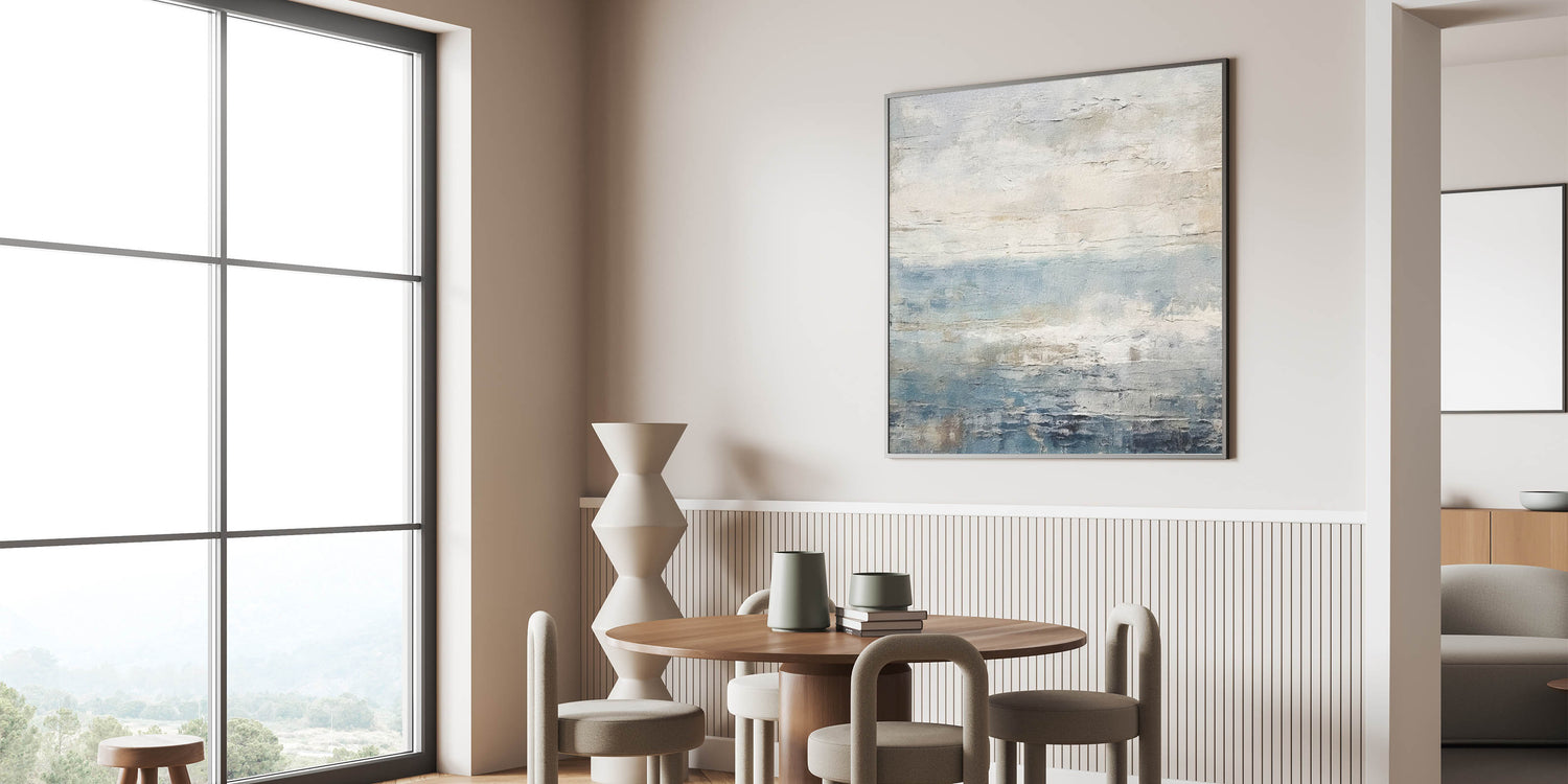 Add this contemporary abstract seascape to your decor to evoke a peaceful atmosphere, bringing a piece of the horizon into your home or office.