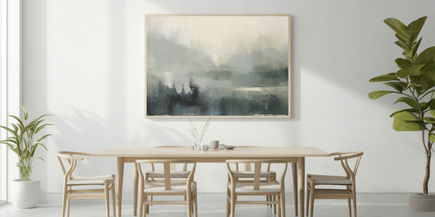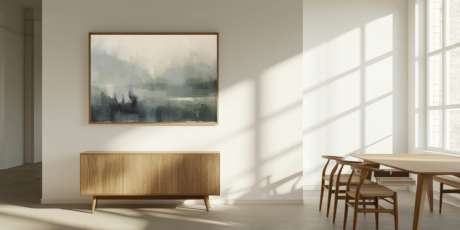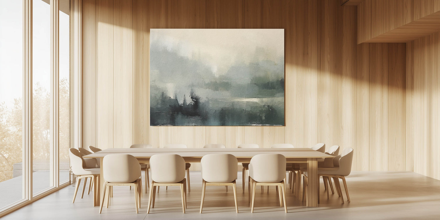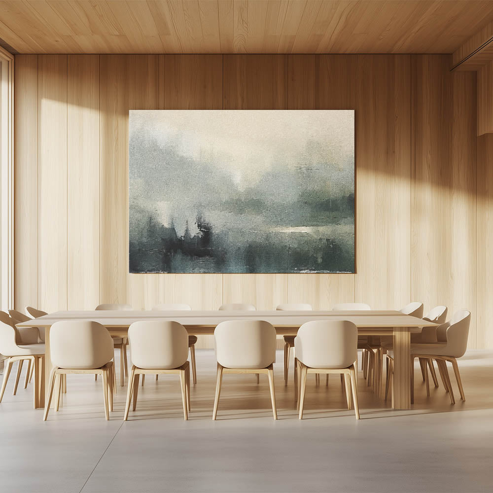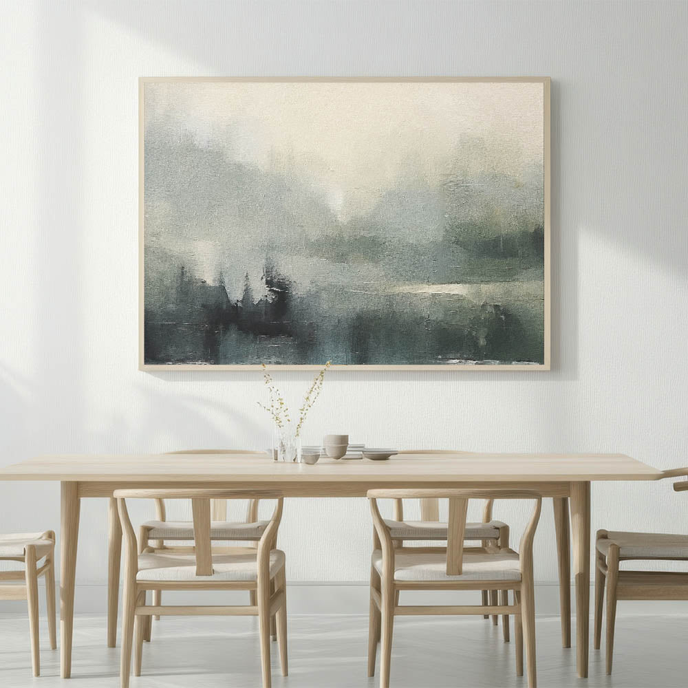 Enhance your home with this beautiful abstract landscape, bringing the quiet elegance of a misty forest into your space. This artwork is a timeless addition, blending simplicity and sophistication.