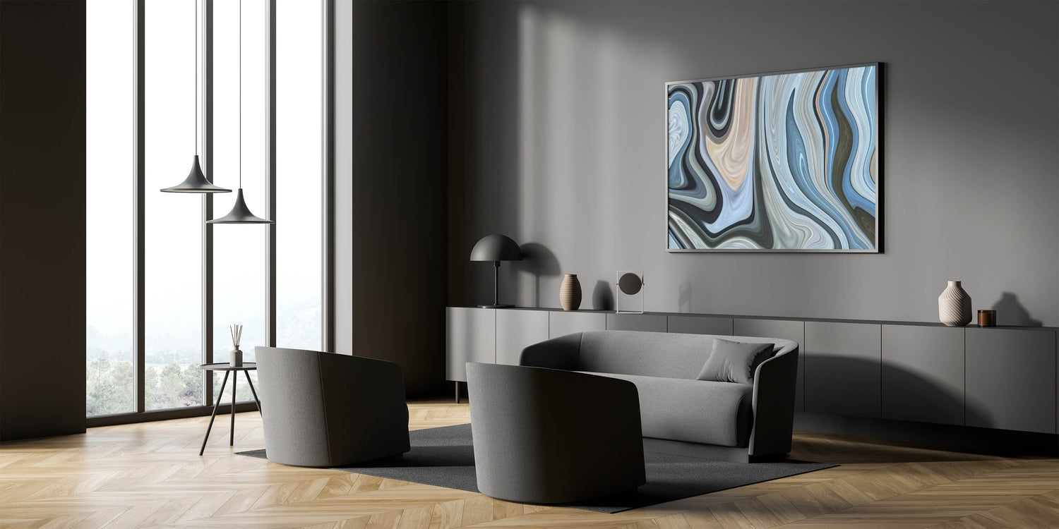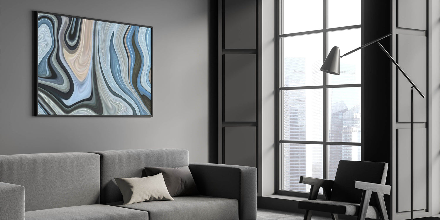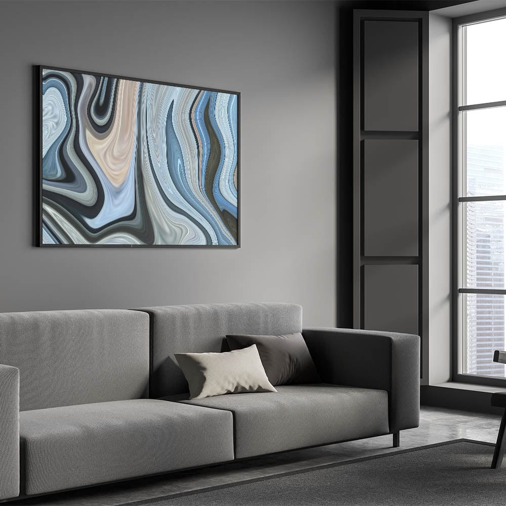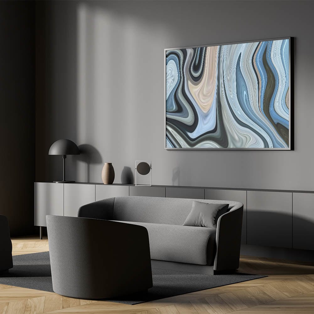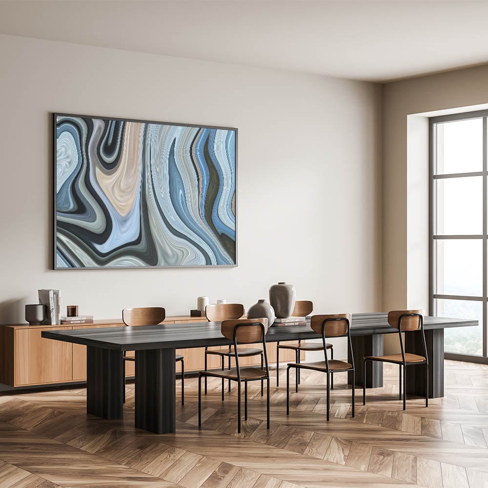 Bring modern tranquility to your home with this Abstract Fluid Canvas Art in calming shades of gray blue, soft beige, and deep charcoal. Flowing like silk across the canvas, the design evokes a gentle rhythm, perfect for contemporary interiors that embrace movement, calm, and simplicity.