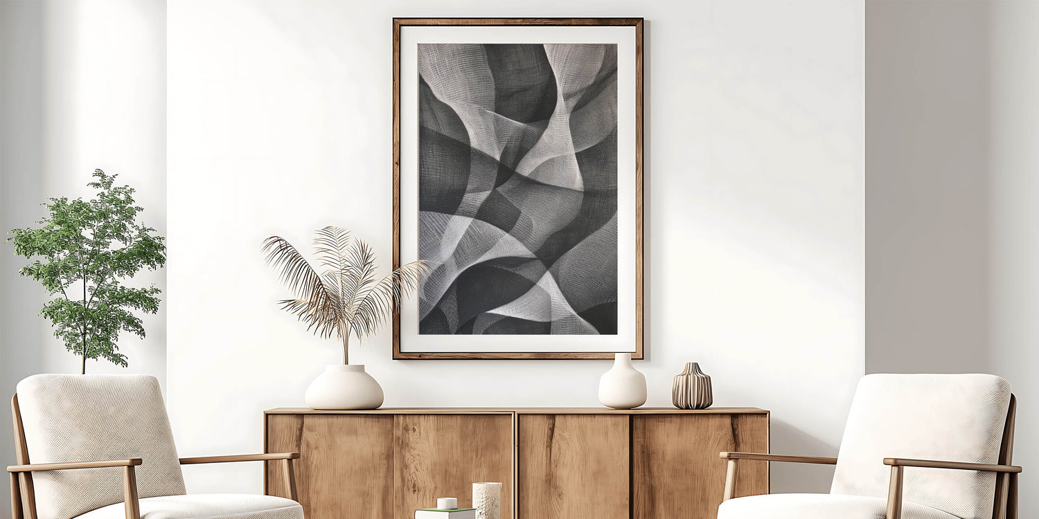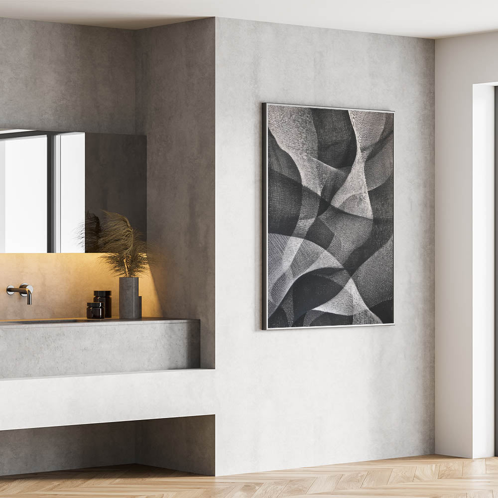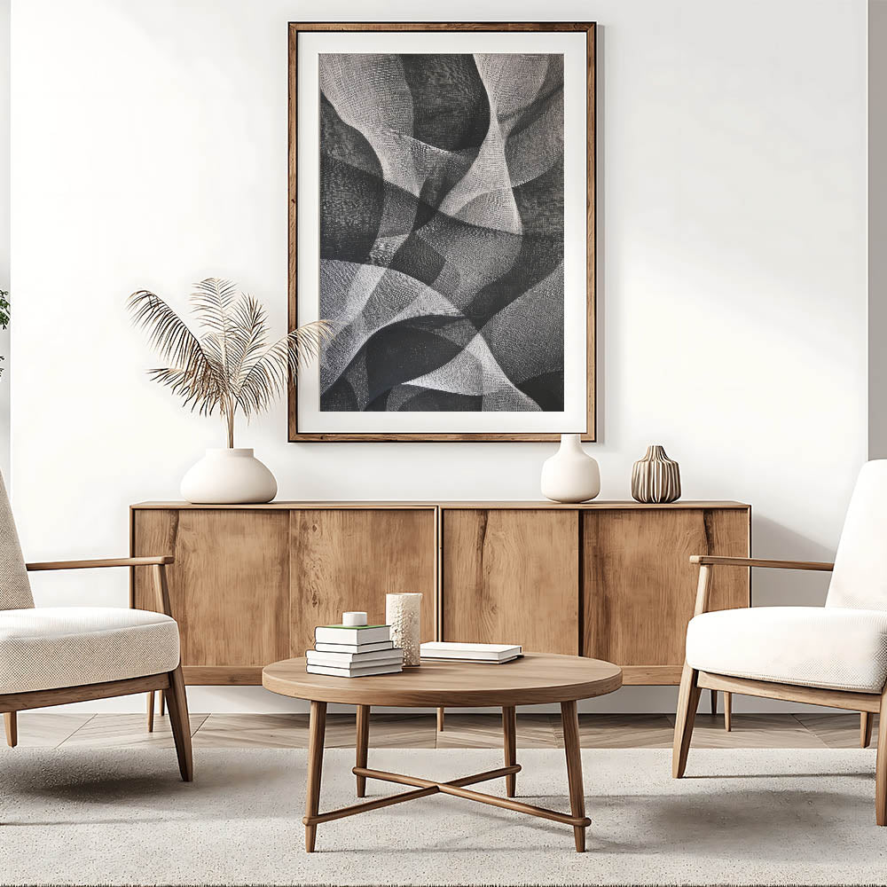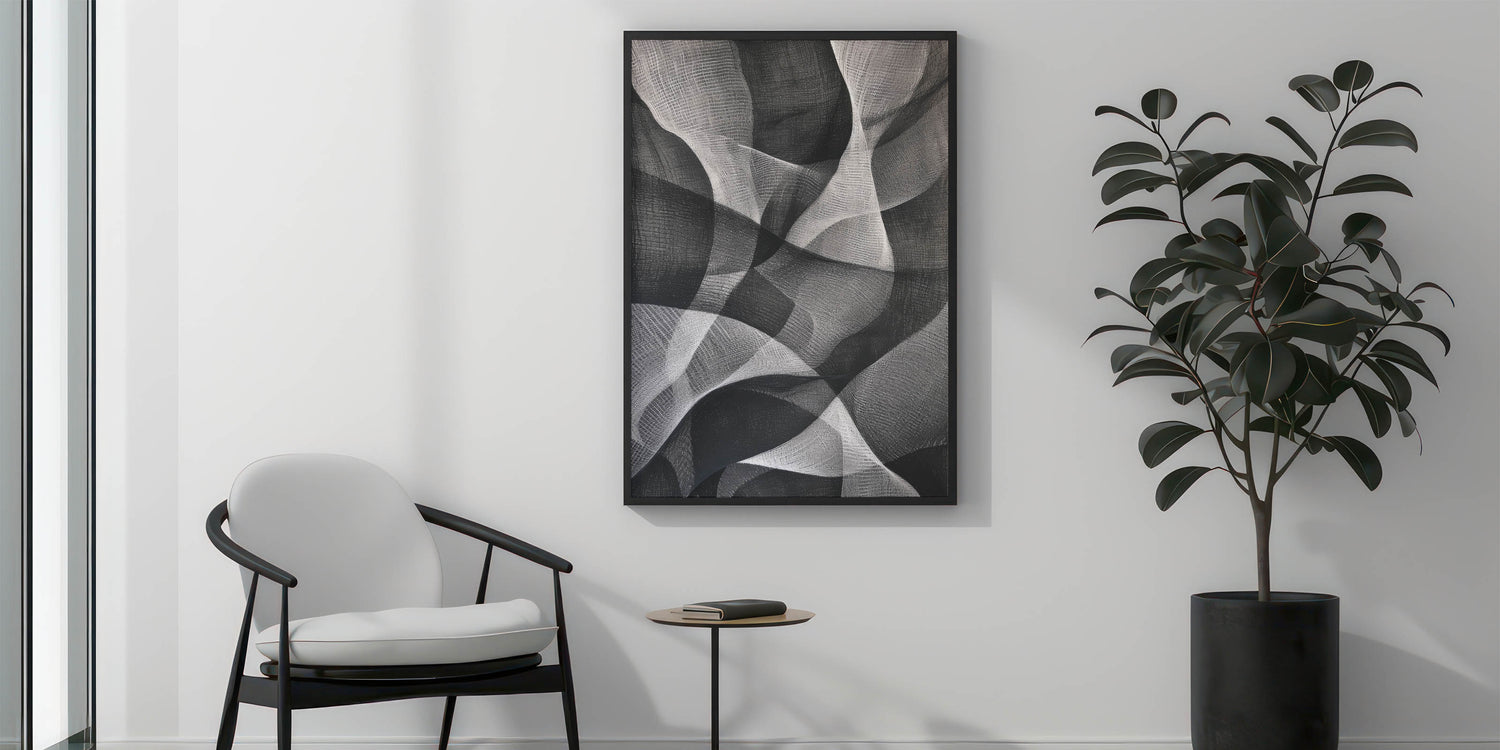 This black and white abstract art canvas blends geometry and fluidity, creating an atmosphere of sophistication and movement. Whether displayed as a standalone statement piece or part of a curated art collection, this artwork is designed to elevate any space with its modern elegance. Shop black and white abstract art online today and transform your space with this fluid geometric design.