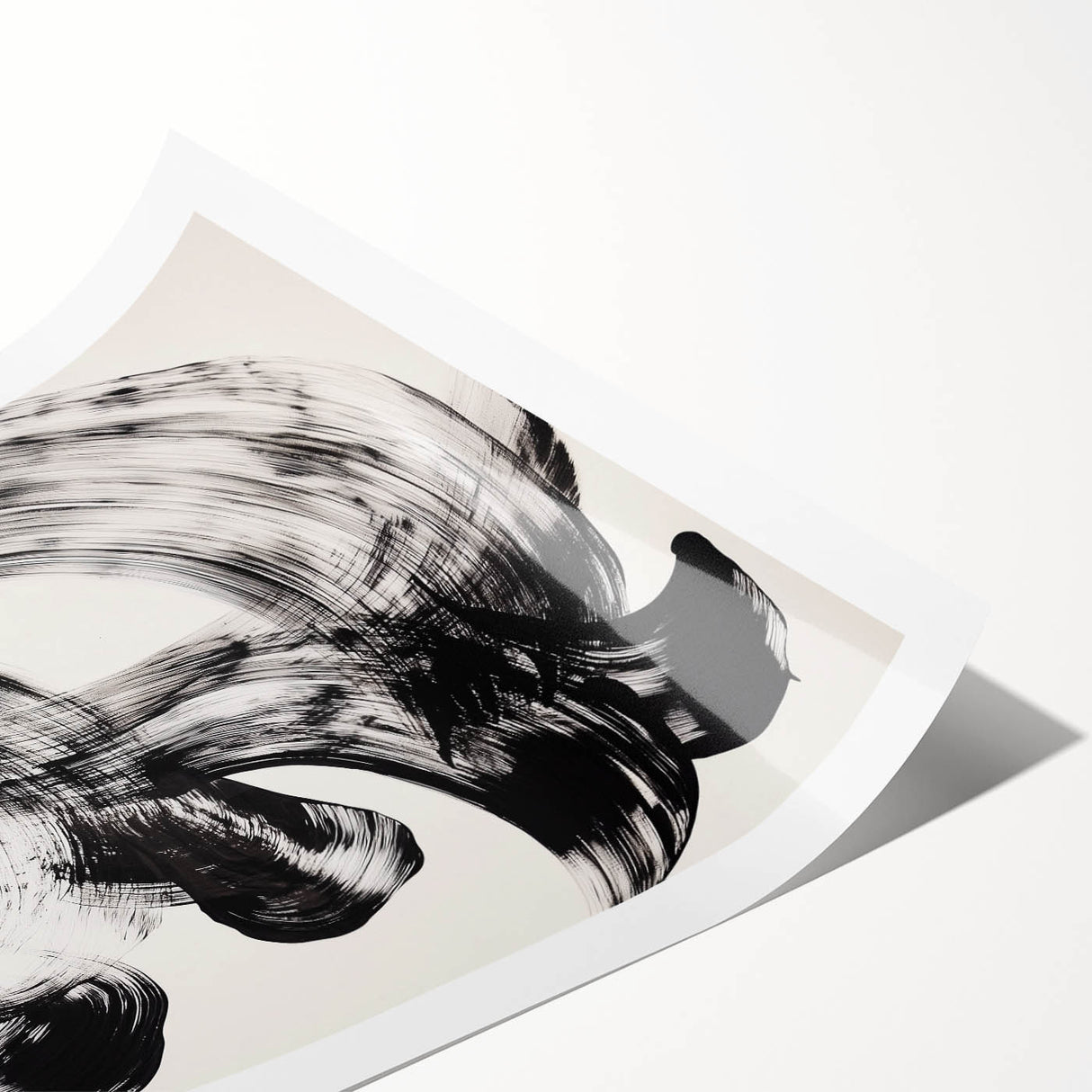 Add a dramatic touch to your space with this Bold Black and White Abstract Line Art. This artwork features dynamic, sweeping black brush strokes on a crisp white canvas, creating a sense of movement and fluidity. The bold contrast between the black and white tones makes it a statement piece perfect for minimalist, modern, or industrial interiors.