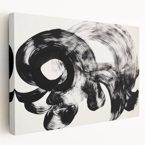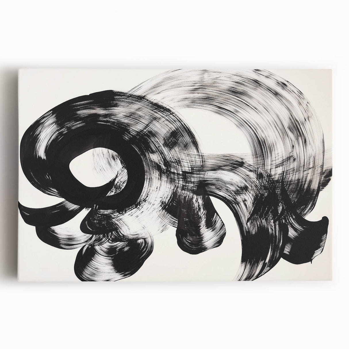 Bold Black and White Abstract Line Art – Modern Brush Strokes Canvas