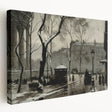 Dark Moody Wall Art - Snowy Urban Street Scene with Vintage Charm