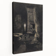 This captivating Gothic wall art features a candlelit still life scene that perfectly captures the atmosphere of a dimly lit, quiet room. The soft glow of the candle contrasts with the dark shadows, creating a striking interplay of light and darkness, evoking feelings of mystery and solitude. This vintage Gothic print draws upon medieval Gothic themes, making it an ideal choice for those who appreciate dark decor style. The still life composition, complete with books, pottery, and a single candle, brings a quiet, contemplative energy to any space.