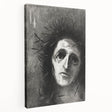 This haunting Gothic artwork features a solemn figure crowned with thorns, rendered in deep, shadowy tones that capture the essence of mysterious Gothic themes. The intense expression and striking contrast between light and shadow evoke a sense of timeless sorrow and intrigue. This Gothic-inspired design is ideal for those who appreciate dark decor styles and want to add a touch of elegance and mystery to their home. Whether displayed on stretched canvas or as a framed print, this captivating piece is sure to elevate your Gothic wall decor ideas.