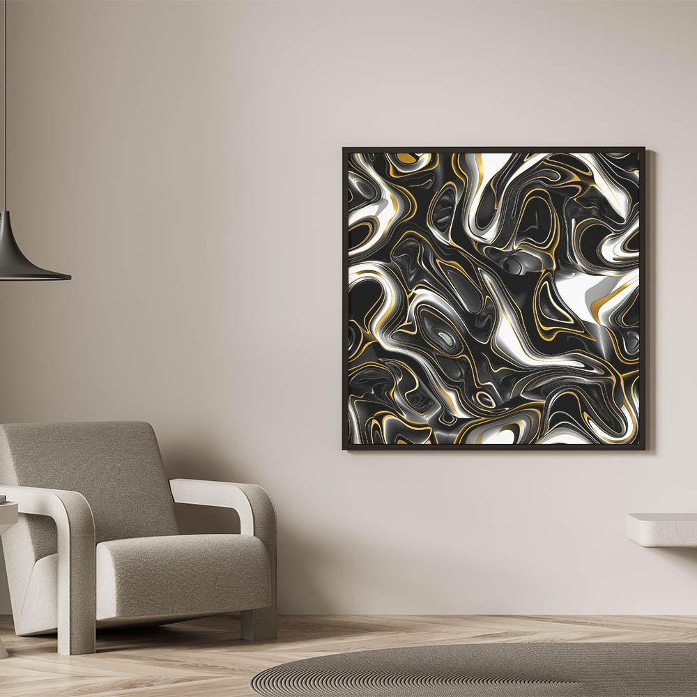 Make a bold statement with this luxury black and gold abstract art, featuring mesmerizing fluid swirls and metallic highlights. This modern black and white abstract painting blends elegance with movement, creating a visually captivating piece perfect for high-end interiors, contemporary spaces, and sophisticated decor settings. The combination of black, white, and gold offers a sleek, refined look that enhances any room.